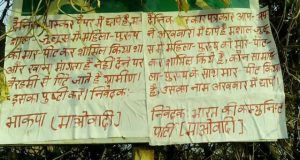 नक्सलियों ने गिरिडीह के गांवो में पोस्टर चिपकाया ,ग्रामीणो में खौफ