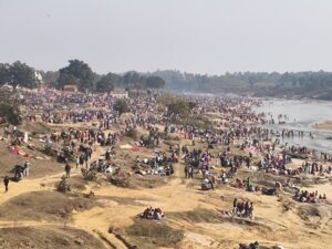 मकर संक्रांति के अवसर पर मधुबन एवं चंपानगर में लगे तीन दिवसीय खिचड़ी मेला में गुरुवार को लोगों का हुजूम देखा गया. लोगों ने उत्तरवाहिनी नदी में स्नान पर पूजा-अर्चना की.