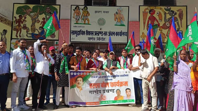 पूर्व निर्धारित कार्यक्रम के तहत शुक्रवार को आजसू पार्टी ने शुक्रवार को प्रखंड व अंचल कार्यालय में व्याप्त भष्टाचार एवं विभिन्न समस्याओं के निराकरण के लिए हल्ला बोल कार्यक्रम किया. आजसू महिला मोर्चा की जिलाध्यक्ष प्रियंका शर्मा के नेतृत्व में पैदल मार्च करते हुए पार्टी नेता कार्यकर्ता ब्लॉक पहुंचे और मुख्य द्वार पर प्रदर्शन किया. कार्यक्रम को संबोधित करते हुए महिला मोर्चा की जिलाध्यक्ष ने कहा कि वर्तमान समय में प्रखंड और अंचल में भ्रष्टाचार फैला हुआ है. मनरेगा से लेकर जल नल योजना में भी अनियमितता आम बात है. अंचल में जमीन का रसीद नहीं काटा जा रहा है. विद्यार्थियों को जाति आवासीय प्रमाण पत्र बनवाने के लिए लगातार कार्यालय के चक्कर काटने पड़ रहे हैं. मौके पर जिला सचिव डोली प्रवीण, जिला कार्यकारी जिलाध्यक्ष शंकर यादव आदि ने भी संबोधित किया. इसके उपरांत आजसू नेता कार्यकर्ताओं ने उपायुक्त के नाम का 12 सूत्री मांग पत्र गांडेय बीडीओ निशात अंजुम को सौंपा. 12 सूत्री मांग पत्र में जमीन संबंधित दाखिल खारिज हेतु अंचल कार्यालय में जमा आवेदनों को अविलंब निष्पादन, अबुआ आवास योजना में पारदर्शिता और योग्य लाभुकों को समुचित लाभ देने, मनरेगा के तहत निर्मित सिंचाई कूप एवं अन्य योजनाओं का क्रियान्वयन एवं भुगतान यथाशीघ्र करने, छात्र-छात्रों का जाति आय एवं आवासीय प्रमाण पत्र बनाने में शीघ्रता लाने, किसानों को खाद एवं बीज की आपूर्ति समय पर करने समेत कई अन्य मांगें शामिल हैं. कार्यक्रम में जिला उपाध्यक्ष शाहबाज आलम, धर्मेंद्र यादव, पप्पू सिंह, अमित कुमार राणा, सचिन कुमार राणा, हीरो कुमार राणा, मेहताब आलम, जैनुल अंसारी, मो. अनवर, संजू देवी, अंजू देवी, सावित्री देवी, पुतुल देवी, सरोज देवी समेत कई लोग उपस्थित थे.