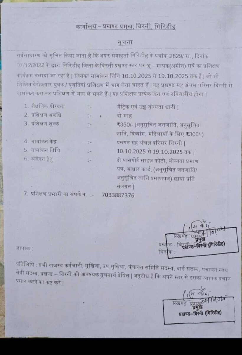 Giridih News :अमीन प्रशिक्षण के नाम पर युवाओं से ठगी का प्रयास
