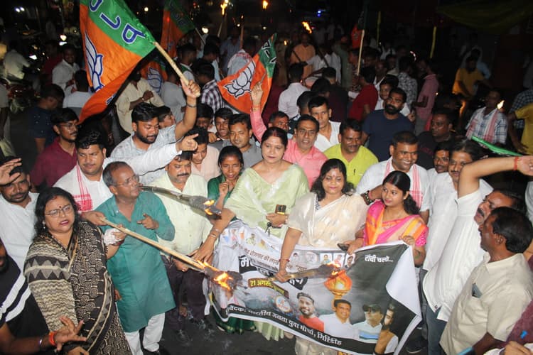 हेमंत सरकार की वादाखिलाफी को लेकर भाजपाइयों ने बुधवार की शाम को शहरी क्षेत्र में मशाल जुलूस निकाला. भाजयुमो के बैनर तले झंडा मैदान से मशाल जुलूस निकाला गया. जेपी चौक पहुंचकर इसका समापन हुआ. इसका नेतृत्व भाजयुमो के जिलाध्यक्ष मिथुन चंद्रवंशी कर रहे थे. इस दौरान हेमंत सरकार के खिलाफ जमकर नारेबाजी की गई. इस मौके पर भाजपा जिलाध्यक्ष महादेव दुबे ने कहा कि मुख्यमंत्री हेमंत सोरेन ने चुनाव के पूर्व घोषणा किया था कि सरकार बनते ही प्रत्येक साल पांच लाख युवाओं को नौकरी देंगे. और जब तक नौकरी नहीं तक तक बेरोजगारी भत्ता दिया जायेगा. उन्होंने कहा कि मुख्यमंत्री का कार्यकाल समाप्त होने को है. बेरोजगारों से जो वादा किया गया उसे पूरा नहीं किया गया. कहा कि राज्य सरकार डपोरशंखी घोषणा करती रही है. इसी को लेकर 23 अगस्त को रांची में भाजयुमो के नेतृत्व में मुख्यमंत्री के आवास का घेराव किया जायेगा. आज हेमंत सरकार की वादाखिलाफी के खिलाफ मशाल जुलूस निकाला गया. मौके पर भाजपा प्रदेश कार्यसमिति सदस्य चुन्नूकांत, सुरेश साव, जिला महामंत्री महेंद्र वर्मा, संदीप डंगेच, नवीन सिन्हा, भाजपा नेता विनय कुमार सिंह, डा. शैलेंद्र चौधरी, महिला मोर्चा की प्रदेश उपाध्यक्ष प्रो. विनीता कुमारी, शालिनी बैसखियार, उषा कुमारी, संजीव कुमार, रंजीत राय, भागीरथ मंडल, सुरेश प्रसाद मंडल, संजीत सिंह समेत कई कार्यकर्ता उपस्थित थे.भाजपा चतरो मंडल कमेटी ने निकाला मशाल जुलूस