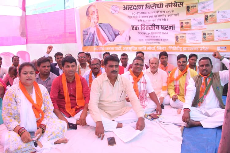 Giridih News : कांग्रेस नेता राहुल गांधी द्वारा देश में आरक्षण को खत्म करने के कथित दिये गये बयान के विरोध में अनुसूचित जाति मोर्चा ने मंगलवार को उपायुक्त कार्यालय के समक्ष धरना दिया. Giridih News : कांग्रेस नेता राहुल गांधी द्वारा देश में आरक्षण को खत्म करने के कथित दिये गये बयान के विरोध में अनुसूचित जाति मोर्चा ने मंगलवार को उपायुक्त कार्यालय के समक्ष धरना दिया. अध्यक्षता जिलाध्यक्ष प्रकाश दास व संचालन जिला उपाध्यक्ष उमेश दास ने किया. मौके पर मुख्य अतिथि भाजपा अजामो के प्रदेश मंत्री कामेश्वर पासवान ने कहा कि कांग्रेस नेता राहुल गांधी ने अमेरिका में जाकर आरक्षण को समाप्त करने पर अपना जो बयान दिया है, उस बयान की हमलोग निंदा करते हैं. अब साफ हो गया कि कांग्रेस दलित विरोधी है. उन्होंने कहा कि भारत में कांग्रेस ने सबसे लंबे समय तक शासन किया और उनके पूरे कार्यकाल में हम दलितों के मसीहा संविधान निर्माता बाबा साहब को कांग्रेस के कार्यकाल में भारत रत्न का भी सम्मान नहीं मिला. पूर्व पीएम स्व. अटल बिहारी वाजपेयी के नेतृत्व में भाजपा सरकार ने बाबा साहब को भारत रत्न देकर सम्मानित करने का काम किया. मोदी सरकार ने बाबा साहब की जन्म भूमि को भी स्मारक बनाने का काम किया. मोर्चा के प्रदेश प्रवक्ता दारा हाजरा ने कहा कि भाजपा और आरएसएस ने बाबा साहेब का हमेशा सम्मान किया है. चाहे आरक्षण का मामला हो या फिर दलितों के अधिकार का मामला, भाजपा हमेशा साथ खड़ी रही है. भाजपा नेता चुन्नूकांत ने राहुल गांधी के बयान की निंदा करते हुए कहा कि कांग्रेस नेता राहुल गांधी ने विदेश में जाकर जो बयान दिया है, वह उनकी नकारात्मक सोच को दर्शाता है. राहुल गांधी को अनुसूचित जाति समाज एवं पूरे देश की जनता कभी माफ नहीं करेगी. वहीं भाजपा प्रदेश कार्यसमिति सदस्य दिनेश यादव ने कहा कि भाजपा अनुसूचित जाति मोर्चा को हमेशा साथ लेकर चली है और हमेशा सम्मान देने का काम किया है. मोर्चा के जिलाध्यक्ष प्रकाश दास ने कहा कि राहुल गांधी दलितों को छेड़ने का काम नहीं करें. आने वाला समय में कांग्रेस की लुटिया डुबोने का काम दलित समाज करेगा. दलितों के आरक्षण के बारे में जिसने भी विरोध करने का काम किया है, ऐसे नेता का जमकर विरोध हुआ है और राहुल गांधी का जो सपना है वह कभी पूरा होने वाला नहीं है. इनके अलावा भाजपा नेता विनय कुमार सिंह, शालिनी बैसखियार आदि ने भी अपने-अपने विचार रखे. मौके पर सुरेश मंडल, रंजन सिन्हा, भोला पासवान, शंकर दास, रूपलाल दास, माथुर दास, लक्ष्मी देवी, आशा देवी, ममता देवी, मोहिनी देवी, पिंकी देवी, सिकंदर दास, प्रेमचंद दास, नारायण दास, गणेश दास, मुकेश दास, विनोद रजक, सुरेश दास, दौलत दास, गोविंद दास, सुरेश रविदास, छोटू कुमार पासवान, दिनेश बैठा, प्रयाग दास, दि