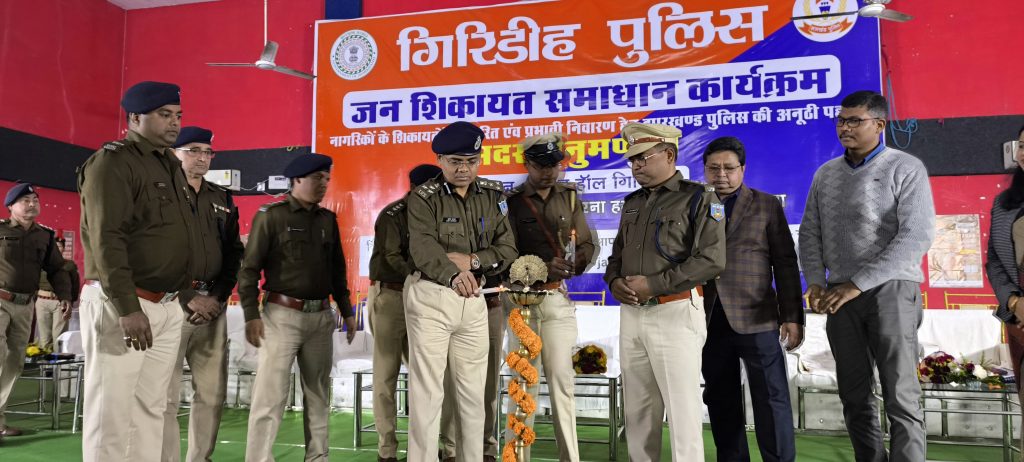 Public Grievance Redressal: पुलिस मुख्यालय के निर्देश पर बुधवार को गिरिडीह पुलिस ने नगर भवन में जन शिकायत समाधान कार्यक्रम का आयोजन किया. मौके पर हजारीबाग रेंज के डीआइजी सुनील भास्कर, एसपी डॉ विमल कुमार, सीओ मोहम्मद असलम समेत अन्य अधिकारियों ने कार्यक्रम का उद्घाटन किया.