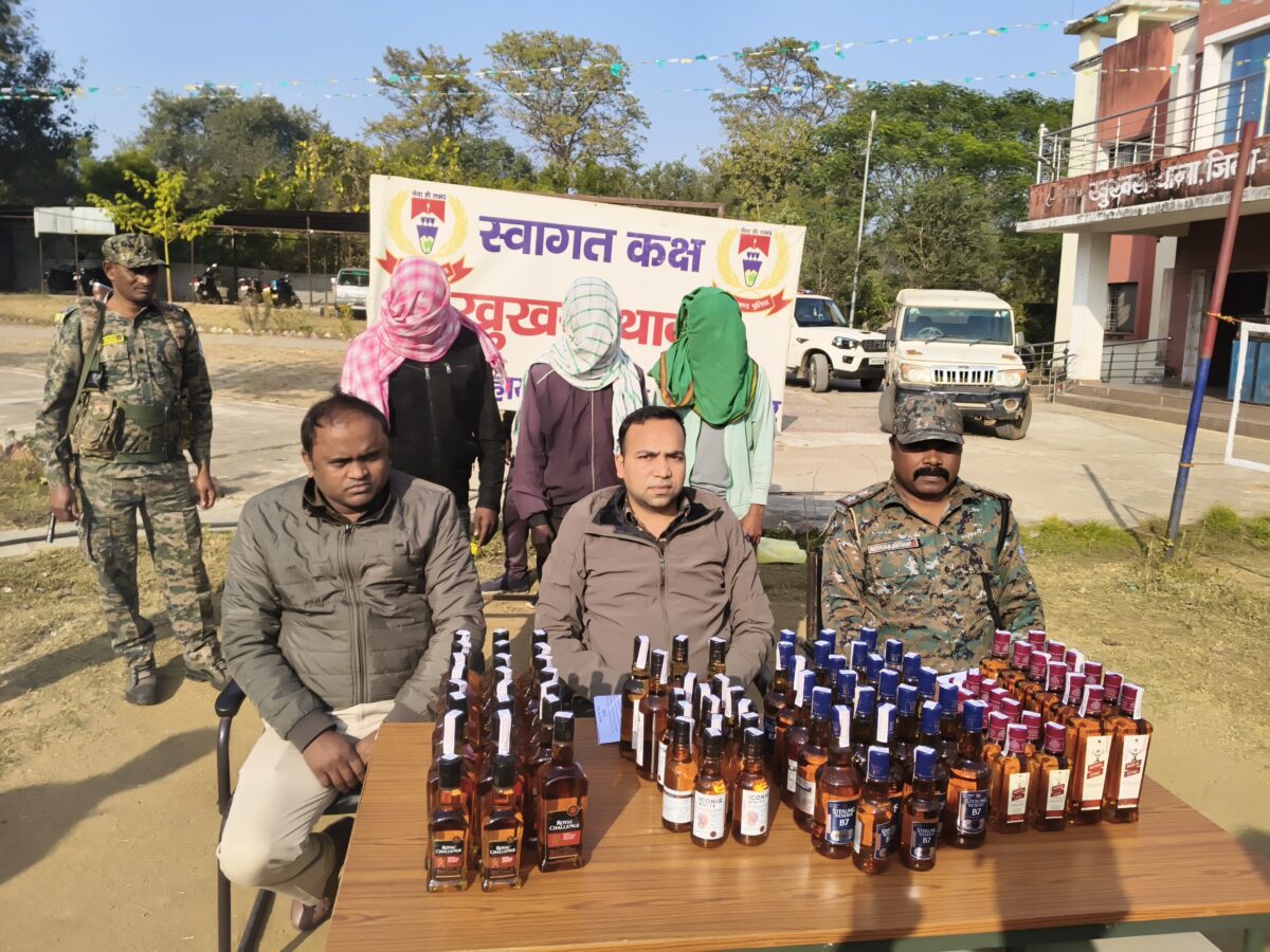 इनमें मुफ्फसिल थाना क्षेत्र के बड़मोड़िया निवासी तेजलाल साव, प्रदीप साव और परमेश्वर साव हैं. जब्त शराब की अनुमानित कीमत 29,600 रुपये है. शनिवार की रात खुखरा थाना पुलिस को सूचना मिली थी कि विभिन्न गांवों में अवैध अंग्रेजी शराब एक कार से पहुंचायी जा रही है. सूचना के सत्यापन के बाद पुलिस ने जमुआटांड़ में घेराबंदी कर कार रोकी. तलाशी के दौरान कार से भारी मात्रा में अवैध अंग्रेजी शराब बरामद की गयी. सभी आरोपियों के खिलाफ खुखरा थाना में उत्पाद अधिनियम के तहत मामला दर्ज कर न्यायिक हिरासत में जेल भेज दिया गया है. कार्रवाई टीम में हवलदार सुनील सरदार, राजेंद्र उपाध्याय, कृष्ण कुमार राय आदि लोग शामिल थे.
