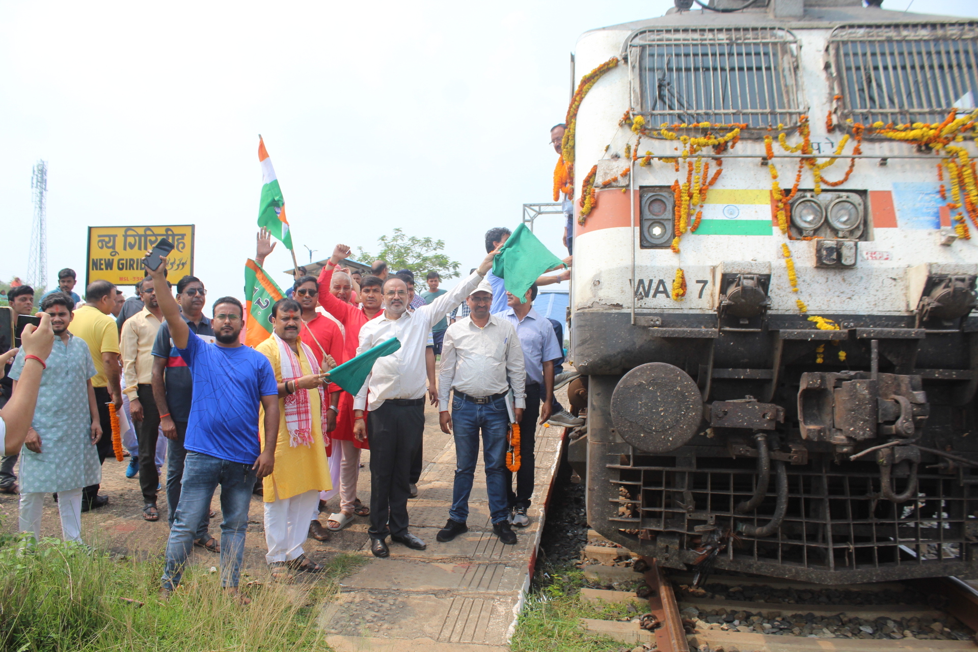 न्यू गिरिडीह व जमुआ होते हुए दिल्ली से चलकर गोड्डा को जाने वाली साप्ताहिक एक्सप्रेस ट्रेन गुरुवार की सुबह अपने निर्धारित समय 10.35 बजे पर न्यू गिरिडीह स्टेशन पहुंची. दो मिनट के ठहराव के दौरान स्टेशन कर्मियों के साथ-साथ चैंबर ऑफ कॉमर्स के पदाधिकारियों ने ट्रेन का स्वागत किया. वहीं ट्रेन के लोको पायलट व गार्ड को भी माला पहनाकर अभिवादन किया गया. चैंबर के पदाधिकारियों ने इस ट्रेन के परिचालन को स्वागत योग्य कदम बताते हुए कहा कि पहली बार गिरिडीह वासियों को सीधे दिल्ली के लिए ट्रेन की व्यवस्था हो जाने से व्यापार को बढावा मिलेगा. वहीं स्थानीय स्तर पर रोजगार के अवसर भी खुलेंगे. व्यावसायियों ने रेलवे के अधिकारियों का हौसला बढ़ाते हुए स्टेशन में सुविधाएं बढ़ाने की जरूरत बतायी. इसे लेकर उन्होंने कोडरमा सांसद सह केंद्रीय मंत्री अन्नपूर्णा देवी और गोड्डा के सांसद निशिकांत दूबे को गिरिडीह में रेल सेवा के विस्तार के लिए बधाई दी. मौके पर स्टेशन प्रबंधक संतोष कुमार सिंह, चैंबर के निर्मल झुनझुनवाला, प्रदीप अग्रवाल, प्रमोद कुमार, विकास खेतान, अमरजीत सिंह सलूजा, मुकेश जालान, दिनेश खेतान, शंभू सरावगी, साहिल जालान, कवि राज आदि उपस्थित थे.