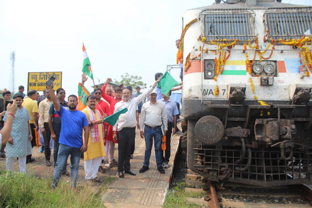 Giridih News: दिल्ली-गोड्डा एक्सप्रेस ट्रेन का न्यू गिरिडीह स्टेशन पर हुआ स्वागत