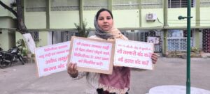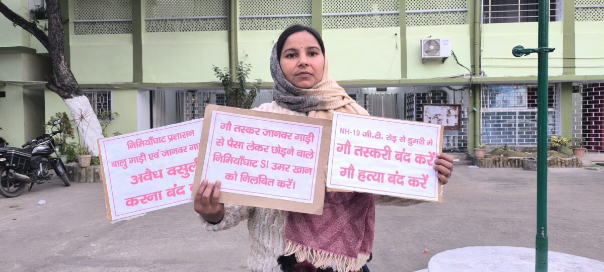 Giridih News: डुमरी जिला परिषद सदस्य सुनीता कुमारी ने जिला परिषद की सामान्य बैठक के दौरान कार्यालय के बाहर गौ हत्या बंद करो, गौ तस्करी बंद करें, निमियाघाट प्रशासन बालू गाड़ी एवं जानवर गाड़ी से अवैध वसूली करना बंद करे की तख्ती लेकर प्रदर्शन किया.