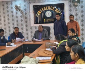 Giridih News :विशेष संक्षिप्त पुनरीक्षण (एसआइआर) संबंधी कार्यों की प्रगति को लेकर गुरुवार को प्रखंड कार्यालय जमुआ में उप निर्वाचन पदाधिकारी रंथू महतो ने बीएलओ और बीएलओ पर्यवेक्षकों के साथ बैठक की. बैठक के दौरान वैसे बीएलओ व बीएलओ पर्यवेक्षकों के द्वारा की जा रही मैपिंग की समीक्षा की.