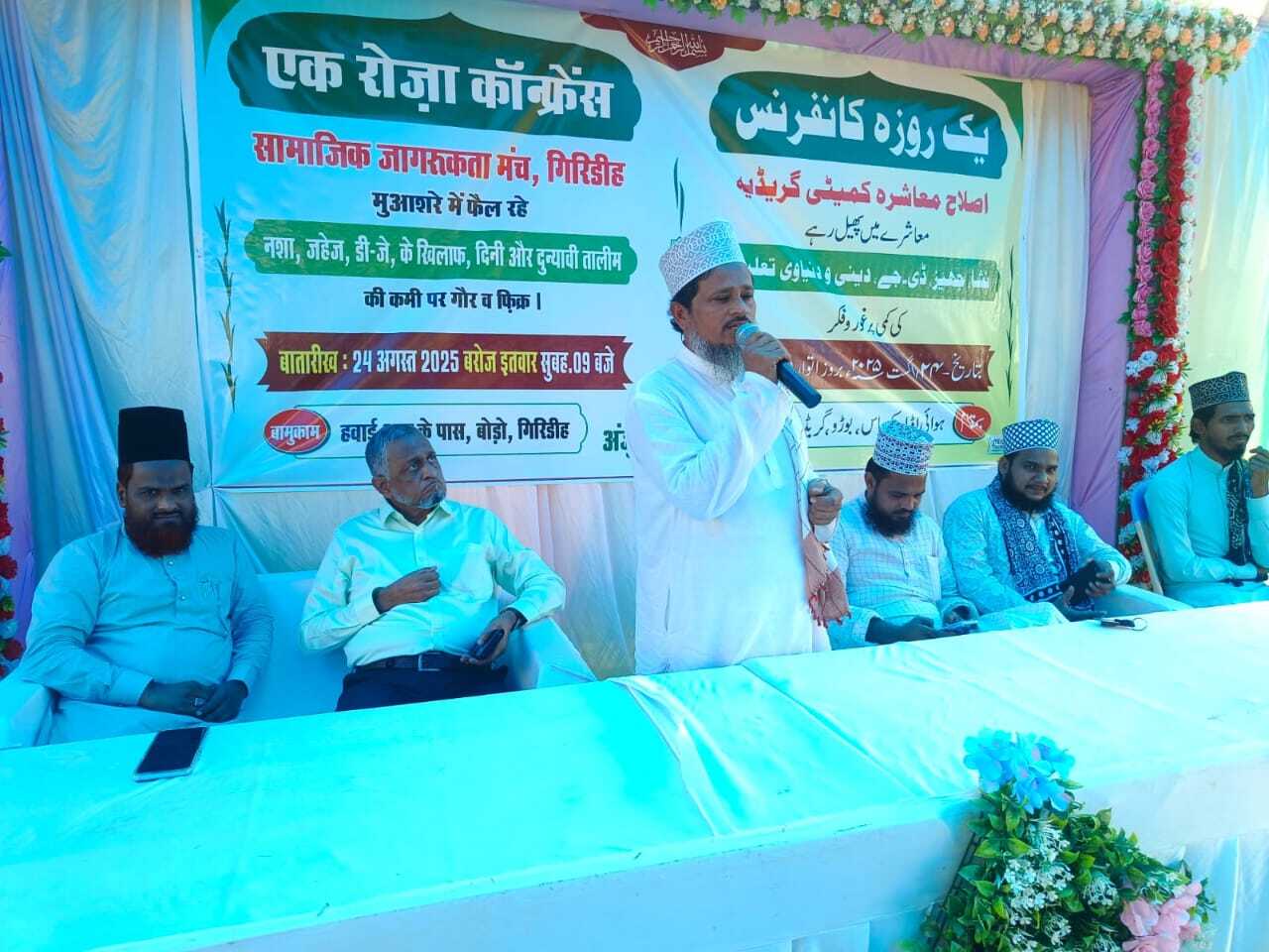 सामाजिक जागरूकता मंच के बैनर व अंजुमन कमेटी बोड़ो के संरक्षण में रविवार को मस्जिदों के इमाम, सदर सेकरेट्री और बुद्धिजीवियों का सम्मेलन हुआ. सम्मेलन में आम राय से तय किया गया कि डीजे वाली बरात का निकाह अब इमाम व आलिम नहीं पढ़ायेंगे. नशा और दहेज पर सख्त पाबंदी लगायी जायेगी. इसके लिए सभी इमाम अंजुमन कमेटी से मिलकर कदम उठायेंगे. डॉ रेयाज अहमद ने कहा कि समाज में दहेज कोढ़ बन चुका है. इसके कारण बेटियों के बापों को दर दर भटकना पड़ता है. नशा से ना सिर्फ युवा, बल्कि घर बर्बाद हो रहे हैं. डीजे से सामाजिक सरोकार खत्म हो रहा है, जिसे रोकने की जरूरत है.मौलाना आसिफ इकबाल ने कहा कि आज से हम लोग शपथ लें कि किसी भी डीजे वाली बरात में निकाह नहीं पढ़ायेंगे और दहेज और नशा रोकने के लिए अंजुमन कमेटी को आगे लाएंगे. मौलाना आसिफ इकबाल की बातों पर सभी अंजुमन कमेटी ने सहमति दी. समाजसेवी इश्तियाक अहमद लालो, मुखिया मो.शब्बीर, झामुमो के फरदीन इम्तियाज अहमद, नूर अहमद, चांद रशीद अंसारी ने भी संबोधि किया. आलिमों के फैसले को हर घर तक पहुंचाने के लिए सभी अंजुमन का दौरा करने की बात कही.उर्दू स्कूल, शिक्षा व छात्रों की समस्याओं का निदान करे सरकार, अन्यथा होगा आंदोलन