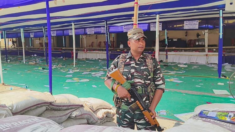 कोडरमा लोकसभा व गांडेय विधानसभा का उपचुनाव 20 मई को शांतिपूर्ण माहौल में संपन्न हो गया है. कोडरमा लोकसभा क्षेत्र में ओवरऑल 61.90 प्रतिशत मतदान हुआ. जबकि विधानसभा वार गांडेय विधानसभा क्षेत्र में 68.30, धनवार 60.51, बगोदर 63.55, जमुआ 58.57, कोडरमा 60.90 और बरकट्टा 60.4 प्रतिशत मतदान हुआ है. कई बूथों में निर्धारित 5 बजे के बाद भी 7.30 बजे तक मतदान हुआ. इधर मतदान खत्म होने के बाद सोमवार की शाम से ही सभी बूथों से इवीएम को कड़ी सुरक्षा के बीच पोलिंग पार्टी के द्वारा पचंबा स्थित बाजार समिति लाया गया. यहां देर रात तक इवीएम जमा करने की प्रक्रिया जारी रही. देर रात तक पचंबा में जाम की स्थिति बनी रही. देर रात तक कड़ी सुरक्षा व्यवस्था के बीच सभी इवीएम को बाजार समिति में बनाये गये स्ट्रांग रूम में जमा किया गया. इसके बाद सभी स्ट्रांग रूम को सील किया गया और अर्धसैनिक पुलिस बलों की तैनाती की गयी.बाजार समिति के मुख्य गेट पर सुरक्षा को ले जवान तैनात :