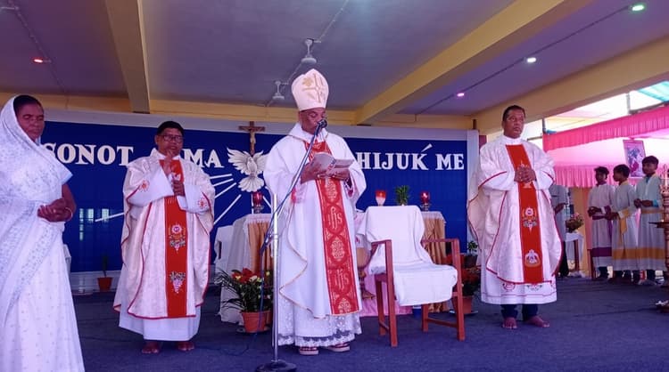 प्रखंड के महेशुमुंडा स्थित संत पीयूष चर्च में मिस्सा बलिदान अनुष्ठान मनाया गया. मिस्सा बलिदान के मुख्य अनुष्टता बिशप स्वामी कुरियन के नेतृत्व में सैकड़ों बच्चों ने प्रथम प्रसाद व दृढ़करण संस्कार लिया. मौके पर विशप स्वामी कुरियन ने कहा कि सभी प्रभु के कथनों का अनुशरण करें और धर्म के अनुसार चलें. कहा कि हमें प्रभु यीशु के प्रेम, दया और शांति के संदेश का पालन कर देश व समाज की सेवा करने की जरूरत है. इसके पूर्व संत जॉन ब्रिटो विद्यालय, निर्मला कन्या विद्यालय व संत जोसेफ के बच्चों ने स्वागत गीत व अन्य कार्यक्रम पेश किये. इसके उपरांत विशप ने मिशन परिसर में संत जोन ब्रिटो मवि के नव निर्मित भवन का विधिवत उद्घाटन किया. मौके पर फादर मसीह, फादर दानियल, फादर मोरिश समेत सिस्टर मारिया गौरेती, अनिता लकड़ा समेत काफी संख्या में मसीही समुदाय के लोग मौजूद थे.डिस्क्लेमर: यह प्रभात खबर समाचार पत्र की ऑटोमेटेड न्यूज फीड है. इसे प्रभात खबर डॉट कॉम की टीम ने संपादित नहीं किया है