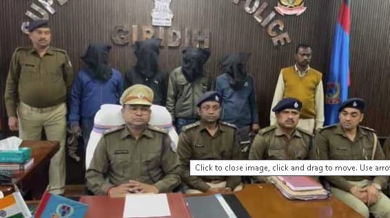 आरोपियों के पास से दो बाइक, चार फोन व नकद 55 हजार बरामदबिरनी के एक घर में डकैती की वारदात को अंजाम देने वाले चार अपराधियों को पुलिस ने गिरफ्तार करने में सफलता पाई है. चारों की गिरफ्तारी तोपचांची थानांतर्गत मतारी गांव के फुटबॉल मैदान में छापेमारी कर की गयी. सभी धनबाद जिला के कतरास के बताये जाते हैं. यह जानकारी मंगलवार को गिरिडीह एसपी डॉ बिमल कुमार ने अपने कार्यालय में प्रेसवार्ता में दी.सभी गिरफ्तार कतरास के