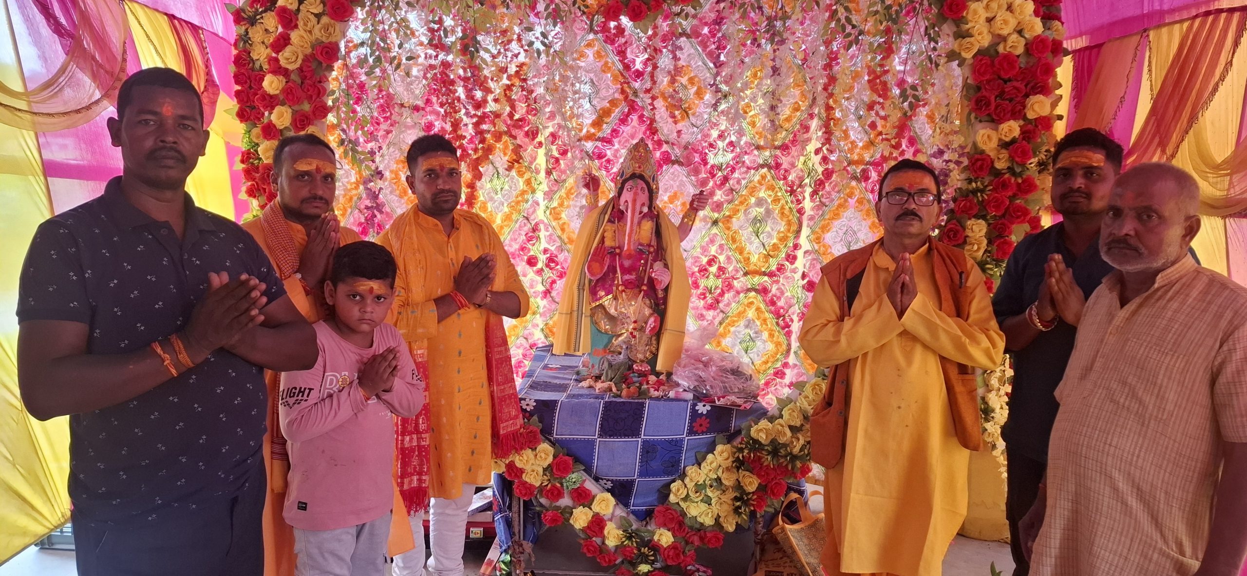 27गिरिडीह57-चतरो में पूजा करते भक्त. देवरी. गणेश चतुर्थी के अवसर पर बुधवार को प्रखंड क्षेत्र के मलडीहा-बीजूटांड़, गादीदिघी, चतरो, कोशोगोंदोदिघी, तेलोडीह, चिकनाडीह, मानिकबाद, असको, बैरिया, बिलोटांड़, हरिरायडीह समेत अन्य गांवों में विघ्नहर्ता भगवान गणेश की पूजा हुई. गांव में बनाये गये पूजा पंडालों में श्रद्धालुओं की भीड़ उमड़ पड़ी.