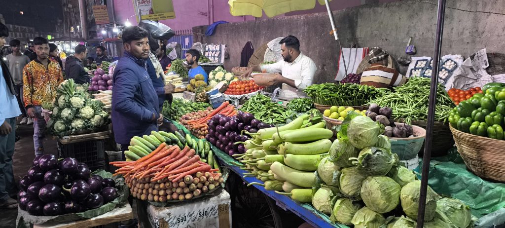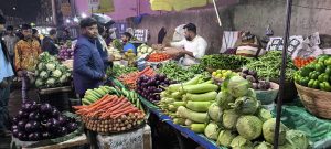 आलम यह है कि 80 रु प्रति किलो बिकने वाला नया आलू अब 50 रु किलो, प्याज 70 से 60 रु किलो, मिर्ची 80 से 40 रु किलो, धनिया 160 से 50 रु किलो, अदरक 200 से 100 रु किलो, टमाटर 100 से 50 रु किलो, बैंगन 50 से 40 रु किलो, शिमला मिर्च 120 से 60 रु किलो, फूलगोभी 80 से 30 रु किलो, पत्तागोभी 60 से 40 रु किलो, फरसबिन 80 से 50 रु किलो, करेला 80 से 50 रु किलो हो गया है.