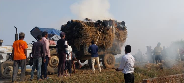 पचंबा थाना क्षेत्र के पिंडाटांड़ में सोमवार की दोपहर एक ट्रैक्टर में लदा धान ग्यारह हजार वोल्ट बिजली प्रवाहित तार की चपेट में आ गया. इसके कारण करीब 200 बिंडा धान जलकर राख हो गया. हालांकि इस घटना में किसी के भी घायल होने की बात सामने नहीं आयी. आग लगते देख अगल-बगल के ग्रामीण वहां पहुंचे और आग बुझाने का प्रयास करने लगे. लेकिन तब तक बिंडा पूरी तरह से जलकर राख हो चुका था. पीड़ित ने बताया कि इस घटना में करीब 10 हजार का नुकसान हुआ है. वहीं आसपास किसानों ने बताया कि इस तरह की घटना को रोकने के लिए बिजली विभाग की अधिकारी को तार थोड़ा ऊपर करना चाहिए. इधर घटना को लेकर बिजली विभाग के जेई राम सुंदर राम ने बताया कि घटना की जानकारी उनको मिल चुकी है. मंगलवार को बिजली विभाग के कर्मियों को भेजकर तार को ऊपर करवा दिया जायेगा.
