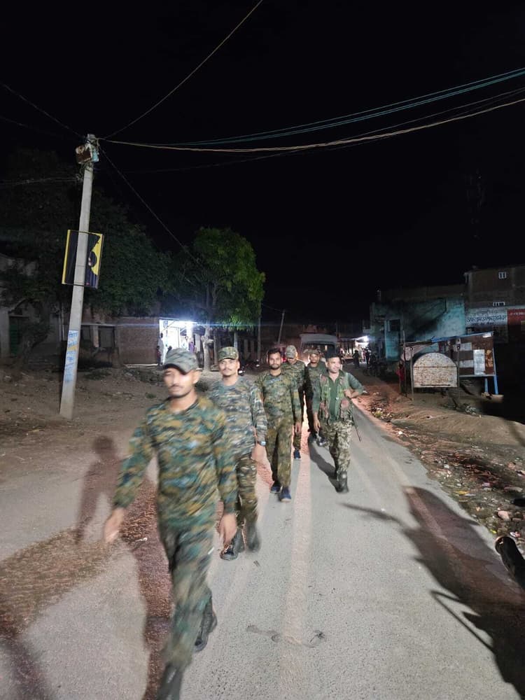 गावां थाना क्षेत्र में दुर्गापूजा को लेकर स्थानीय ग्रामीण व पूजा कमेटियों के द्वारा पूजा की सभी तैयारी पूर्ण की जा रही हैं. गावां पुलिस अलर्ट मोड पर है. सर्किल इंस्पेक्टर सह थाना प्रभारी रोहित कुमार के नेतृत्व में गावां पुलिस ने फ्लैग मार्च निकालते हुए विभिन्न पूजा स्थलों का निरीक्षण किया. इस मौके पर एसआई सतीश सिंह, प्रवेश चौधरी सहित चौकीदार ने मेला स्थल गावां, पिहरा, माल्डा, नगवां, खरसान व बिरने पंडाल का निरीक्षण किया. निरीक्षण के दौरान थाना प्रभारी रोहित कुमार ने कमेटी के सदस्यों को विभिन्न तरह के दिशा निर्देश दिये.