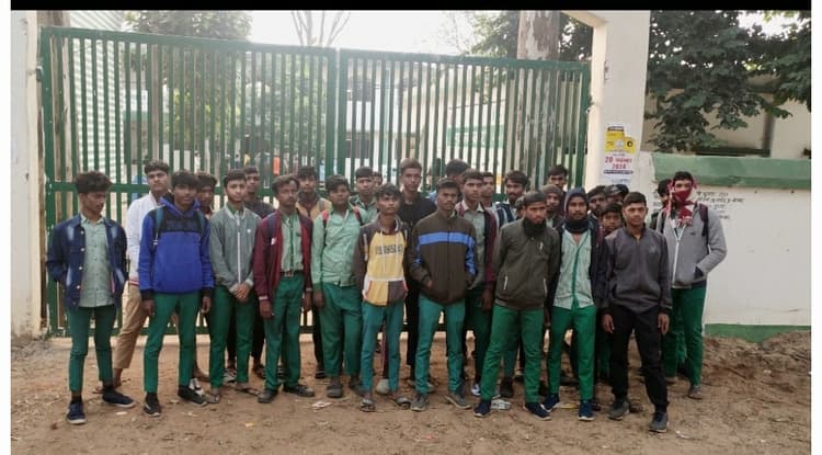 हंगामा करते हुए छात्रों ने बंद मेन गेट में लगा दिया ताला