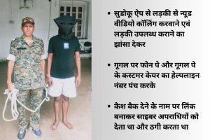 - पूछताछ के क्रम में सोनू ने बताया कि वह सुडोकू ऐप के माध्यम से लड़की से न्यूड वीडियो कॉलिंग करवाने एवं लड़की उपलब्ध कराने का झांसा देकर लोगों को लिंक भेजकर ठगी करता था.