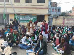 Giridih News :मांगों को ले हजारीबाग रोड रेलवे स्टेशन पर झामुमो का धरना