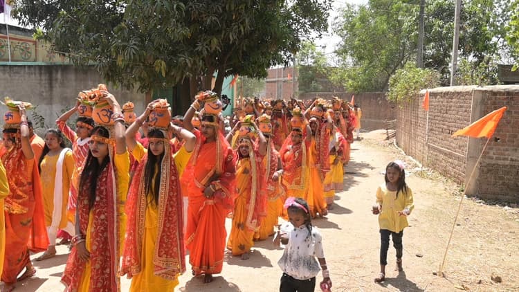 Giridih News: सात दिवसीय शतचंडी महायज्ञ को लेकर मंगलवार को हीरोडीह थाना के कुरुमडीहा से कलश यात्रा निकाली गयी. इसमें सैकड़ों ग्रामीणों ने हिस्सा लिया. 351 महिलाएं सिर पर कलश लेकर यज्ञाचार्य पंडित सुबोध उपाध्याय के मार्गदर्शन में तिलौना सीमा पर अवस्थित नदी के तट पर पहुंचीं. वहां वैदिक विधि विधानों से उपचारित जल को कलश में भरा गया. जल भरने के पूर्व इंद्रादी देवताओं का आह्वान वैदिक मंत्रों के साथ किया गया. वैदिक पंडितों ने वेद ऋचाओं का सस्वर पाठ कर कलश यात्रा के साथ क्षेत्र को भक्तिमय कर दिया. जल भरने के बाद कुरुमडीहा होकर मल्हो दुर्गा मंदिर प्रांगण में देवी दुर्गा को आमंत्रित करते हुए कलश यात्रा आगे बढ़ी. कलश यात्रा टांड़ पर स्थित यज्ञस्थल पर आकर समाप्त हुई. बता दें कि टांड़ पर स्थान को चगरिया टीला कहा जाता है जो रेंबा पंचायत के राजस्व ग्राम मल्हो का टोला है. बगल में ही कुरूमडीहा है, जो फतहा पंचायत का गांव है. दोनों गांवों ने मिलकर देवी मंदिर का निर्माण करवाया है. उक्त मंदिर में देवी मंदिर की प्राण प्रतिष्ठा के निमित महायज्ञ का आयोजन किया गया है. महायज्ञ में विशाल पंडाल, भव्य यज्ञ मंडप बनाकर उसे जगमग लाइटों से सजाया गया है. कलश यात्रा की अगुवाई यज्ञाचार्य सुबोध उपाध्याय, यज्ञ कमेटी के मन्नू सिंह, जीवलाल साव,आनंद साव, प्रकाश साव, सुखु साव, भाजपा नेता कैलाश साव, परमेश्वर यादव, विहिप के महामंत्री सुभाष पंडा, पंसस के प्रतिनिधि दिनेश साहू, युवा लीडर पवन साहू, जीतेंद्र कुमार, मुंशी साव, टूपलाल, किशुन साव, राजू साव, डीलो साव, जीतेंद्र साव सहित कई लोग कर रहे थे.