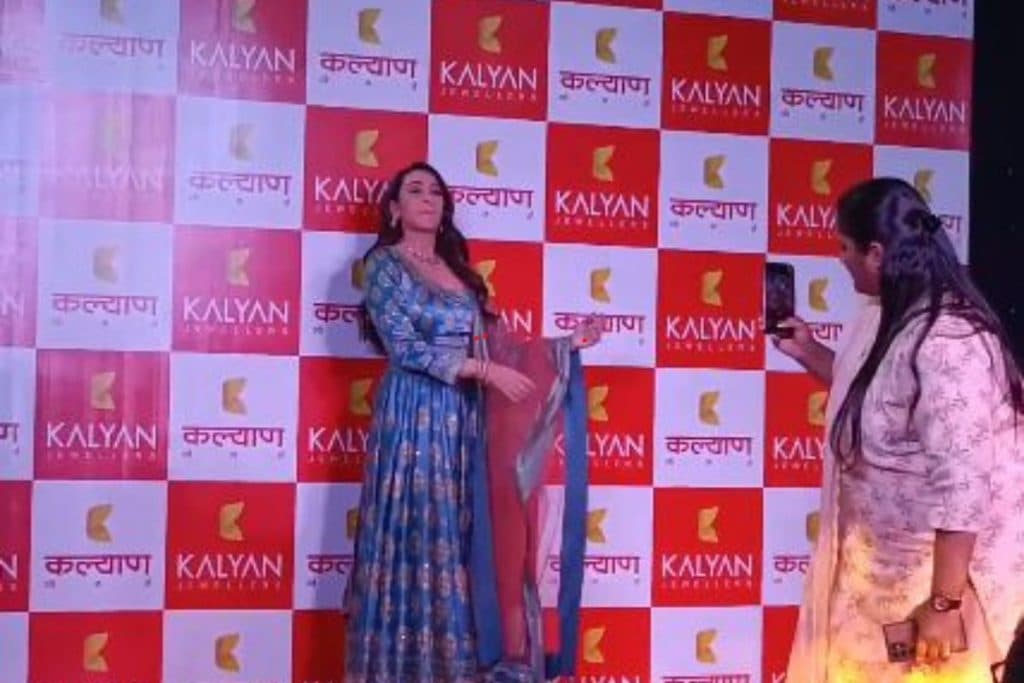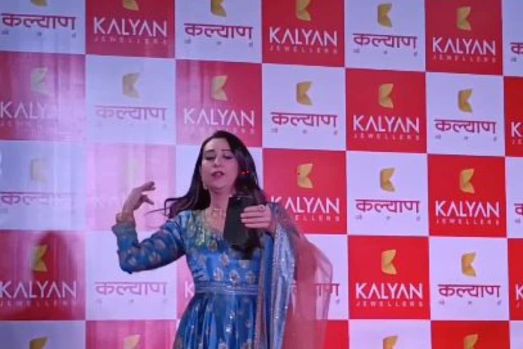 कल्याण ज्वेलरी शॉप के उद्घाटन पर अभिनेत्री करिश्मा कपूर ने फैंस की डिमांड पर डांस भी किया. उन्होंने हीरो नंबर वन के गाने पर जमकर ठुमके लगाये. इस दौरान फैंस भी इस गाने पर झूमते नजर आए. इससे पहले जैसे ही अभिनेत्री ने मंच पर कदम रखा. सभी लोग उनकी एक झलक पाने को बेताब दिखाई पड़े. करिश्मा कपूर ने हाथ हिलाकर सभी का अभिवादन किया. इस खूबसूरत पल को फैंस ने भी अपने कैमरे में कैद कर लिया.