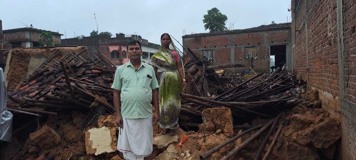 बिरनी प्रखंड के जीतकुंडी गांव में गुरुवार की रात मूसलाधार बारिश के कारण मजदूर राजू साव के मिट्टी का घर ध्वस्त हो गया. गृहस्वामी समेत परिवार के सभी सदस्य बाल-बाल बचे. मलबे में दबने से दो बकरा व दो बकरी की मौत हो गयी. घटना के बाद गृहस्वामी अपने परिवार के साथ पड़ोस के घर में शरण लिये हुए हैं. राजू साव व उसकी पत्नी कंचन देवी को घर ढहने के बाद रहने की समस्या चिंता सता रही है. राजू साव की पत्नी कंचन देवी ने बताया कि गुरुवार की रात करीब साढ़े नौ बजे घर में भोजन करने जा रहे थे. इसी दौरान अचानक घर की एक तरफ की दीवार गिरने की आवाज सुनकर सभी सदस्य घर से बाहर भागे. बाहर निकलते ही पूरा घर बैठ गया. घटना से घर के अंदर रखे 50 किलो चावल, कागजात, कपड़े, बर्तन आदि मिट्टी में दब गये. जो कपड़ा पहने हुए हैं, सिर्फ वही बचा है. उन्होंने बताया कि मजदूरी कर अपने तीन बच्चों व वृद्ध मां का पालन-पोषण कर रहे हैं. राशन भी नहीं मिलता है. किसी तरह पड़ोसी के घर के बाहर बरामदे में रात गुजारने को विवश हैं. समाजसेवी मुंशी साव ने कहा कि पति-पत्नी दिहाड़ी मजदूरी कर अपने परिवार का पालन पोषण कर रहे हैं. घर ध्वस्त होने के बाद उनके समक्ष रहने की समस्या उत्पन्न हो गयी है. बिरनी बीडीओ से रहने के लिए आवास व राशन देने की मांग की गयी है. इधर, बिरनी के बीडीओ फणीश्वर रजवार ने कहा कि घटना की जांच कराकर पीड़ित परिवार के लिए रहने व खाने की व्यवस्था करायी जायेगी.पुरनानगर में घर में भरा बारिश का पानी