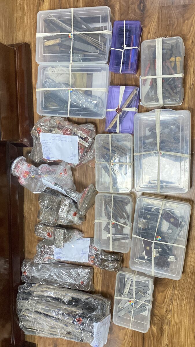 गिरफ्तार अपराधियों की जब पुलिस ने आपराधिक पृष्ठभूमि की जांच की, तो कई अहम जानकारियां सामने आयीं. इनमें से तीन आरोपी पहले से ही विभिन्न थानों में दर्ज गंभीर मामलों में वांछित पाये गये. मोहम्मद चुन्ना के खिलाफ गौरीचक थाना में कांड संख्या 311/23 दर्ज है. यह मामला अवैध गतिविधियों और संगठित अपराध से जुड़ा है. मोहम्मद कमरुद्दीन उर्फ सदना के खिलाफ मशरक थाना में कांड संख्या 11/23 दर्ज है. इस कांड में भी अवैध हथियार और संगठित अपराध में उसकी संलिप्तता सामने आ चुकी है. मोहम्मद शमीर मल्लिक उर्फ सद्दाम भी मशरक थाना कांड संख्या 11/23 में आरोपी है. इन मामलों की पुष्टि के बाद पुलिस ने बताया कि यह गिरोह न सिर्फ हथियार निर्माण में शामिल था, बल्कि इनके तार कई पुराने मामलों और अंतरराज्यीय अपराध नेटवर्क से भी जुड़े हुए हैं.भारी मात्रा में हथियार और उपकरण बरामद