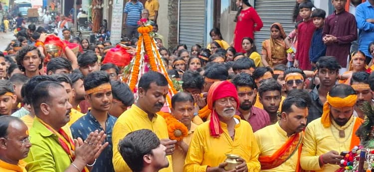 दुर्गापूजा महासमिति राजधनवार के तत्वाधान में बुधवार को राजधनवार सार्वजनिक दुर्गा मंडप प्रांगण से गाजे-बाजे व ढोल नगाड़ों के साथ मां दुर्गा की भव्य पालकी यात्रा निकाली गयी. पालकी यात्रा में गीत-संगीत व ढोल नगाड़ों के बीच महिला, पुरुष व बच्चे उत्साह के साथ नाचते, गाते व माता के जयकारे लगाते हुए चल रहे रथयात्रा बाजार का भ्रमण करते हुए बेलभरनी तालाब पहुंची. यहां विधि विधान पूर्वक पूजापाठ करते हुए माता का आह्वान किया गया. माता को पालकी में विराजमान कर मंडप में लाया गया जहां पंडित धर्मेंद्र शास्त्री तथा उपेंद्र शास्त्री ने वैदिक मंत्रोच्चारण के साथ प्रतिमा संकल्प पूजन कराया जिसमें पत्रकार अरविंद कुमार सपरिवार शामिल हुए. इसके बाद मुख्य यजमान किशोरी लाल चौरसिया सहित कई श्रद्धालुओं ने माता की पूजा अर्चना भक्ति भाव के साथ की. पूजा संपन्न होने के बाद भक्तों के दर्शनार्थ माता का पट खोल दिया गया. पट खुलते ही श्रद्धालुओं की भीड़ उमड़ पड़ी. पालकी यात्रा में मुख्य यजमान किशोरी लाल चौरसिया, पूजा समिति अध्यक्ष अमित कुमार, उपाध्यक्ष महेंद्र स्वर्णकार, सचिव संतोष साहू, उप सचिव अमर कुमार, कोषाध्यक्ष सचिन साहू, विजय कसेरा, शंभू रजक, दीपक सिन्हा, दीपक लहकार, बासुदेव साव, रोशन कुमार, संतोष कुमार, कृष्णा स्वर्णकार, निखिल कुमार, संजय कुमार, प्रवीण कुमार, शिव शंकर साहू, अनमोल कुमार, सोनू कुमार, गौतम कुमार, सोनी देवी, सुजाता देवी, सुनीता देवी, संगीता देवी, मालती देवी, रेणू देवी, सीमा कुमारी, पूजा कुमारी, पूनम कुमारी, काजल कुमारी, रिया कुमारी आदि श्रद्धालु शामिल थे.