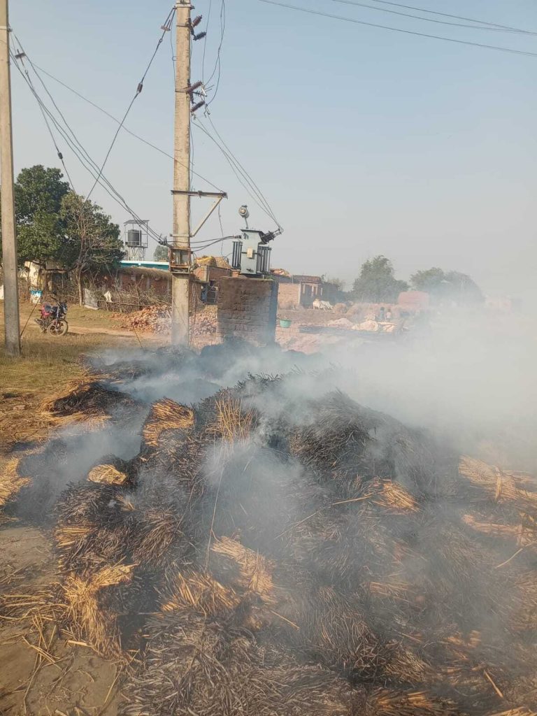 बिजली लाइन की झनझनाहट सुनकर किसान ने खलिहान से भागकर जान बचायी. इस दौरान किसान के खलिहान में रखे पांच सौ से अधिक धान के बंडल, बिचाली व धान जल गयी. लाइन कटवाने के बाद ग्रामीण आग को बुझाने में जुट गये. कड़ी मशक्कत के बाद आग पर काबू पाया गया लेकिन तब तक धान पूरी तरह बर्बाद हो गया. बताया जाता है कि ट्रांसफार्मर के बगल में ही किसान का खलिहान है. खलिहान में खेत से कटाई कर धान को रखा गया था. दोपहर में ट्रांसफार्मर के अर्थिंग तार में करंट आ गया. करंट से खलिहान में आग लग गयी. तार में करंट से आग लगने के बाद ट्रांसफार्मर से तेज आवाज निकलने लगी. किसान ने खलिहान से भागकर अपनी जान बचायी. हो-हल्ला के बाद लाइन कटवाने के बाद आग को बुझाने में ग्रामीण जुट गए. आगजनी की इस घटना में किसान ने 25000 से अधिक मूल्य के धान के बंडल, बिचाली व झाड़ा हुआ धान जलने की बात कही है. बता दें कि उक्त ट्रांसफार्मर के अर्थिंग तार में बराबर करंट आते रहती है जिससे अबतक दो मवेशियों की मौत भी हो चुकी है. किसानों ने विभाग को इसकी जानकारी भी दी लेकिन कोई सुधार नहीं किया गया. ग्रामीणों ने विभाग से मुआवजा देने की मांग की है.
