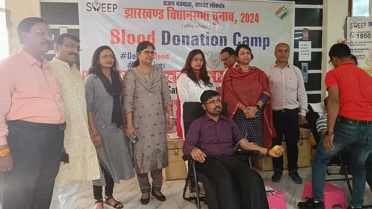 जिला प्रशासन व स्वास्थ्य विभाग, गिरिडीह के तत्वाधान में शनिवार को समाहरणालय प्रांगण में रक्तदान शिविर-सह-मतदाता जागरूकता कार्यक्रम का आयोजन किया गया. समाहरणालय परिसर में आयोजित रक्तदान शिविर में कुल 53 यूनिट ब्लड संग्रह किया गया. रक्तदान शिविर में डीसी समेत कई अधिकारियों व कर्मचारियों व आमजनों ने भी स्वैच्छिक रक्तदान किया. मौके पर डीसी सह जिला निर्वाचन पदाधिकारी नमन प्रियेश लकड़ा ने कहा कि विधानसभा चुनाव 2024 में शत-प्रतिशत मतदान बढ़ाने के उद्देश्य से स्वीप एक्टिविटी के तहत आज समाहरणालय प्रांगण में रक्तदान शिविर सह मतदाता जागरूकता कार्यक्रम का आयोजन किया गया. जिसमें मतदाताओं ने पूरे उत्साह के साथ भाग लिया तथा रक्तदान के साथ-साथ इस लोकतंत्र के महापर्व में मतदान करने की शपथ ली. उन्होनें कहा कि मजबूत लोकतंत्र के लिए अधिक से अधिक मतदाताओं को जागरूक होना आवश्यक है. उन्होंने कहा कि निर्वाचन प्रक्रिया में मतदाताओं की जागरूकता एवं नैतिक सहभागिता को विकसित करना महत्वपूर्ण पहलू है. इसके अलावा स्वीप कार्यक्रम के तहत मतदाताओं को उनके मताधिकार के प्रति जागरूक व प्रोत्साहित किया गया. इस अवसर पर उप विकास आयुक्त, सदर अनुमंडल पदाधिकारी, अपर समाहर्ता, जिला समाज कल्याण पदाधिकारी, जिला जनसंपर्क पदाधिकारी समेत स्वीप कोषांग की पूरी टीम समेत अन्य संबंधित अधिकारी उपस्थित थे.डिस्क्लेमर: यह प्रभात खबर समाचार पत्र की ऑटोमेटेड न्यूज फीड है. इसे प्रभात खबर डॉट कॉम की टीम ने संपादित नहीं किया है