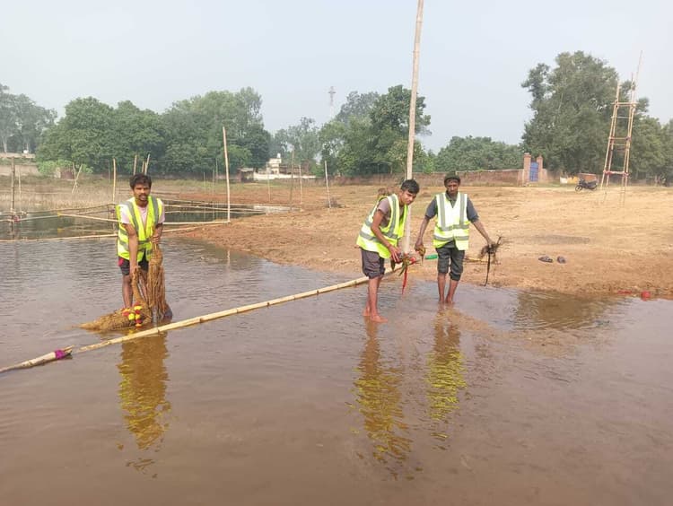 लोक आस्था का महापर्व छठ को ले सोमवार को अहिल्यापुर पंचायत की मुखिया पंचम देवी के नेतृत्व में विभिन्न छठ घाटों की साफ सफाई व निर्माण का काम शुरू किया गया. मुखिया के अलावा समाजसेवी पिंटू हाजरा की अगुवाई में नदियों के छठ घाटों की सफाई कर जल संचयन का काम कराया गया. बताया गया कि जल्द ही युवा संगठनों के सहयोग से पहुंच पथ एवं अन्य व्यवस्था दुरुस्त करायी जाएगी. मौके पर दिलीप हाजरा, इंजन हाजरा, होरिल महतो, संतोष साव समेत कई ग्रामीण मौजूद थे.बीडीओ ने लिया छठ घाटों का जायजा, साफ सफाई का निर्देश
