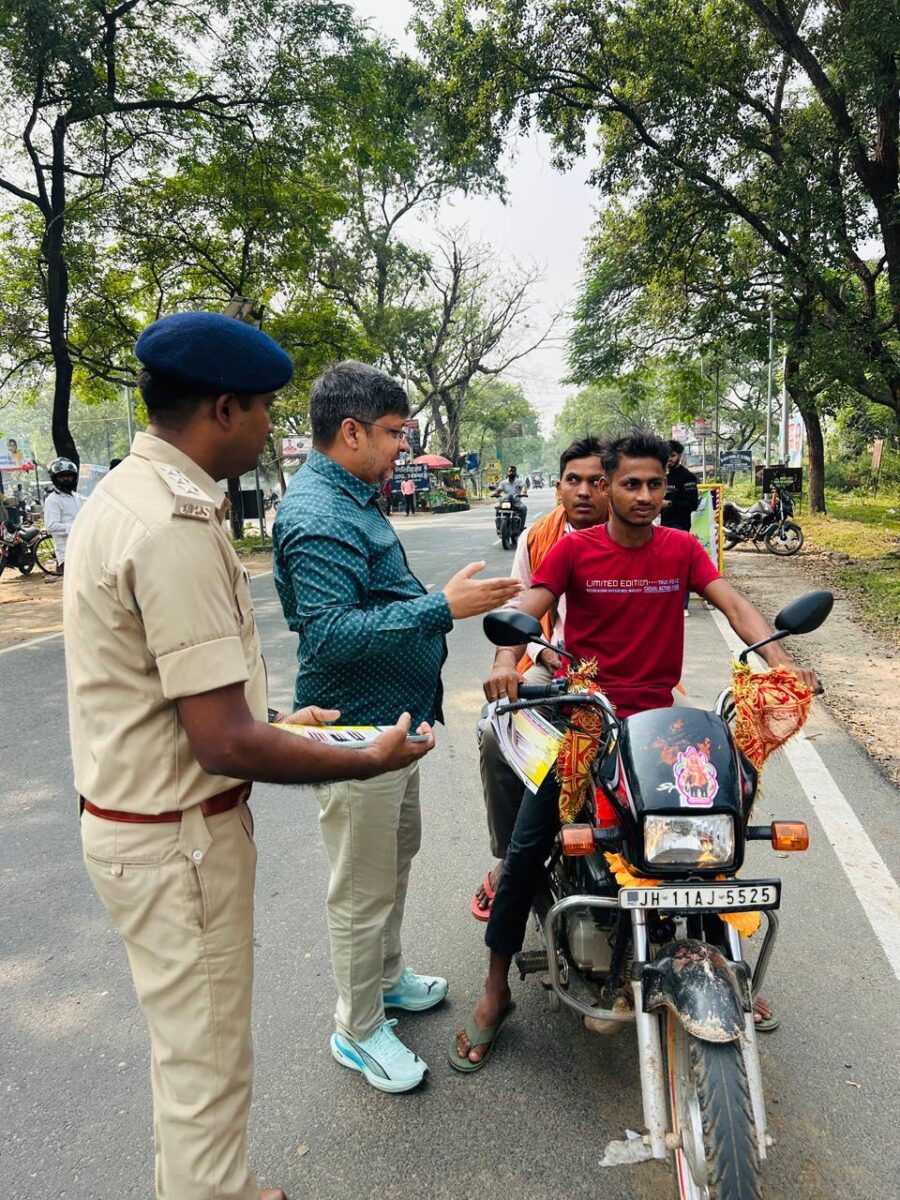 बताया गया कि वाहन को उनकी गति सीमा के अंदर ही चलाएं, इससे ज़रूरत पड़ने पर वाहन को रोकने तथा नियंत्रित करने का पर्याप्त समय मिलता है. नियंत्रित गति सीमा से बाहर वाहन चलाने पर मोटरयान अधिनियम 2019 की धारा 183 के तहत आपको दंड स्वरूप भरना पड़ सकता है. सड़क पर रेसिंग करते पकड़े जाने पर चालक को मोटरयान अधिनियम 2019 की धारा 189 के तहत पहले अपराध के लिए पांच हज़ार या तीन महीने के कारावास या दोनों से दंडित किया जाएगा. साथ ही सड़क पर वाहन चलाते समय ट्रैफिक नियमों एवं सड़क सुरक्षा नियमों का पालन अवश्य करें. जागरूकता अभियान के दौरान सभी लोगों के बीच रोड सेफ्टी हैण्डबुक, रोड सेफ्टी पम्पलेट एवं रफ़्तार घटाओ सुरक्षा बढ़ाओ पम्पलेट का भी वितरण किया गया. अभियान के दौरान पुलिस उपाधीक्षक (यातायात) मो कौशर अली, जिला परिवहन पदाधिकारी संतोष कुमार एवं मोटर यान निरीक्षक गौरी शंकर कुमार रवि, जिला सड़क सुरक्षा प्रबंधक मो वाजिद हसन, साकेत भारती, मनोज कुमार, मुफ़्फ़सिल एवं यातायात थाना के जवान मौजूद थे.