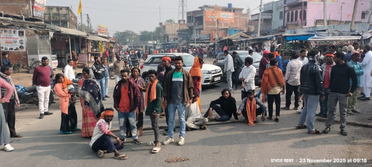 Giridih News: शनिवार को हुए सड़क हादसे के बाद रविवार की सुबह मृतक युवक के परिजनों व ग्रामीणों ने शव के साथ घोड़थंभा ओपी गेट के सामने मुख्य सड़क जाम कर मुआवजे की मांग की. सुरजाही पर्व के कारण सड़क पर काफी आवाजाही थी. अचानक सड़क जाम होने से दोनों ओर वाहनों की लंबी कतार लग गयी.