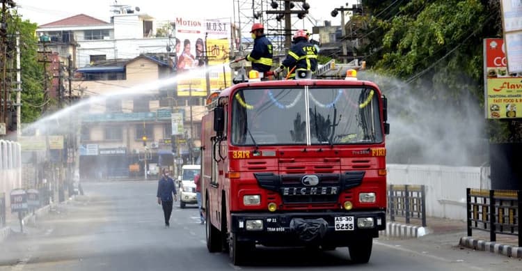 शहरी क्षेत्र में चल रहा सेनेटाइज करने का कार्य