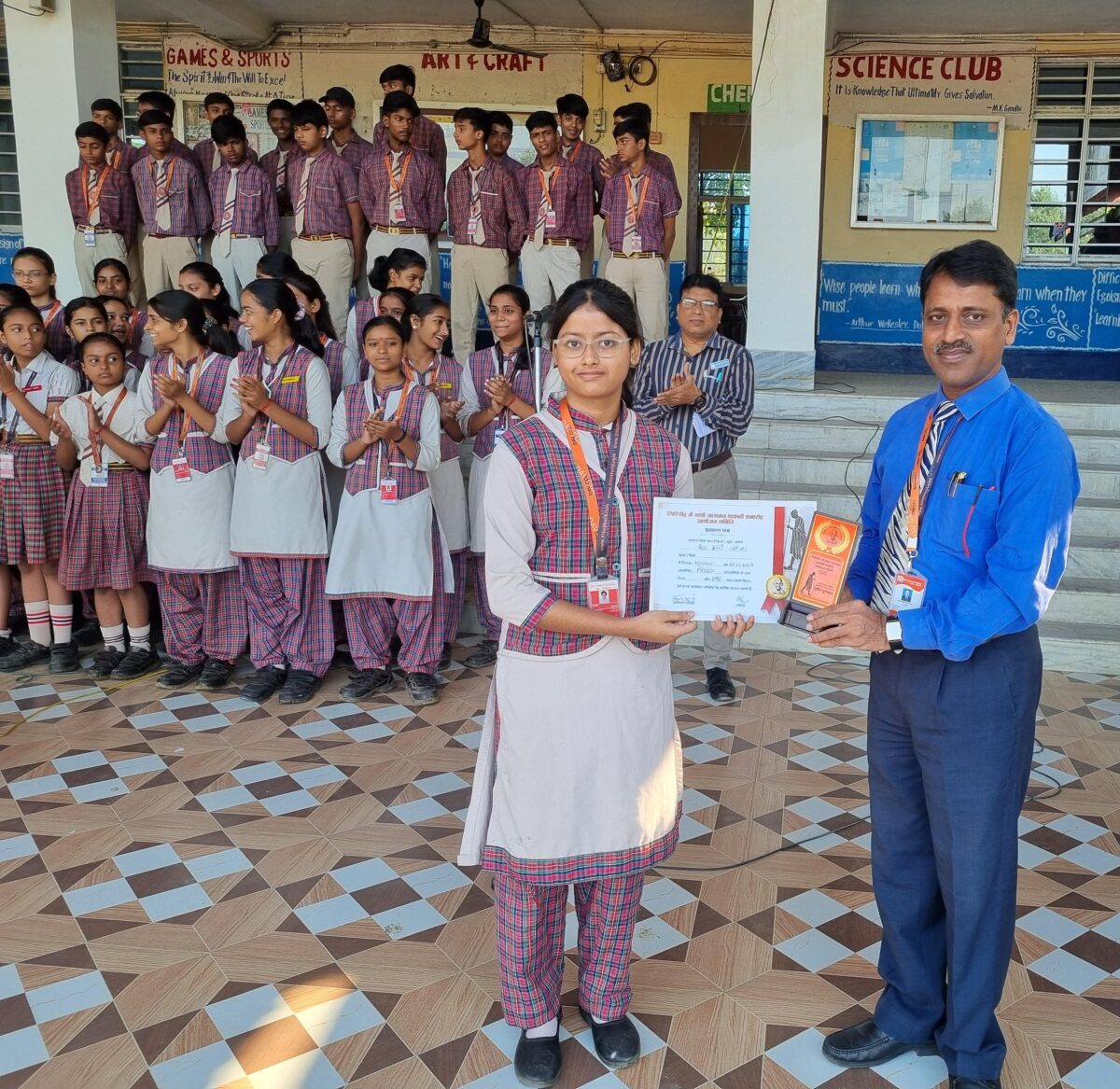 निबंध प्रतियोगिता में सृष्टि सेनगुप्ता, रंगोली में ऋतिका राज ने प्रथम, भाषण में माही महक प्रथम व प्राची कुमारी द्वितीय तथा चित्रकला में मेघा कुमारी ने तृतीय स्थान प्राप्त किया. प्राचार्य ने बच्चों के अलावा शिक्षक विश्वनाथ घोषाल व सुभाष तिवारी को पुरस्कृत किया. विश्वनाथ घोषाल ने अपने प्रभात प्रकाशन, भारत सरकार द्वारा आयोजित कविता लेखन में के लिए उन्हें सम्मानित किया गया. सुभाष तिवारी को गार्गी मंजू सम्मान, टेंडर हार्ट विद्यालय रांची के द्वारा देश के 200 विशिष्ट शिक्षकों को केंद्रीय मंत्री संजय सेठ व प्रसिद्ध कवि व अभिनेता शैलेश लोढ़ा ने सम्मानित किया. प्राचार्य श्री गोयल ने कहा कि प्रातः कालीन सभा हम सभी के लिए विशेष है, क्योंकि यह बच्चों के साथ-साथ हम शिक्षकों को भी प्रोत्साहित करने वाला है. सभी पुरस्कृत बच्चे व शिक्षक ने विद्यालय को विशेष ऊंचाई पर ले जाने का काम किया है.