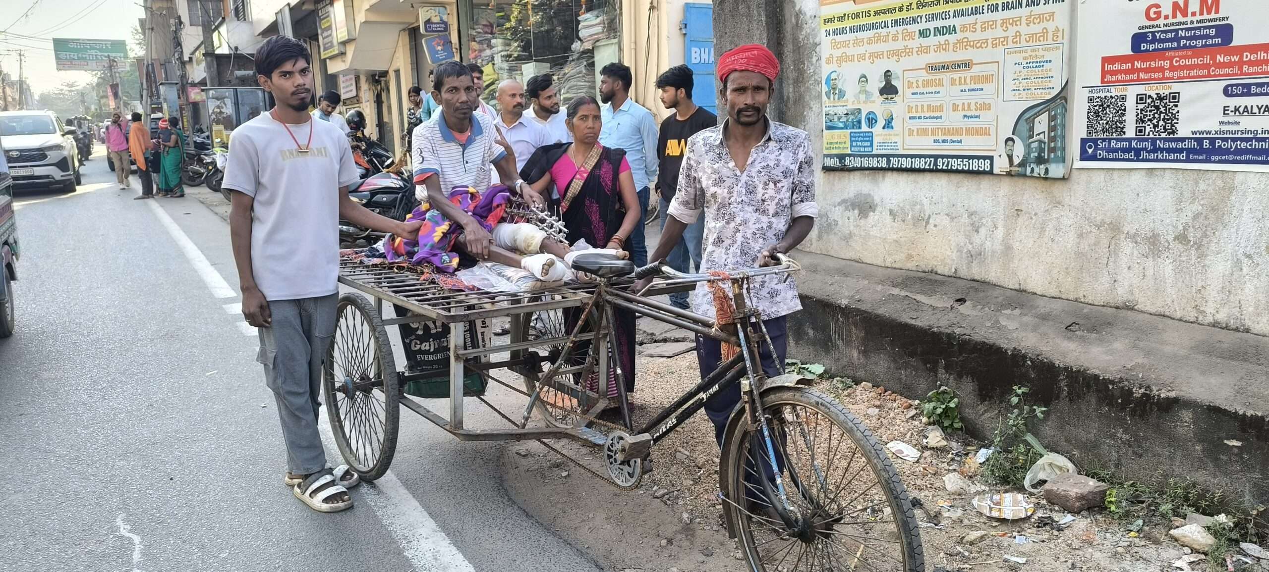 यह घटना अस्पताल प्रशासन और व्यवस्था पर कई सवाल खड़ी करती है. मिली जानकारी के अनुसार शहरी क्षेत्र के बक्सीडीह रोड स्थित झिंझरी मोहल्ला निवासी सुनील राम 2 सितंबर को सड़क दुर्घटना में गंभीर रूप से घायल हो गए थे. रिम्स रांची में उनका ऑपरेशन हुआ और पैर में रॉड डाला गया. ऑपरेशन के बाद वे ड्रेसिंग कराने के लिए नियमित रूप से सदर अस्पताल गिरिडीह आ रहे थे. शनिवार को भी सुनील राम अपनी पत्नी रेणु देवी और परिजनों के साथ अस्पताल पहुंचे थे. अस्पताल की ओर से उन्हें एक व्हीलचेयर उपलब्ध करा दी गई थी. इसी दौरान उपचार के लिए आवश्यक कागजी प्रक्रिया के तहत आधार कार्ड अपडेट कराना जरूरी हो गया. परिजनों का कहना है कि जब वे सुनील राम को उसी व्हीलचेयर पर बैठाकर अस्पताल परिसर के बगल में स्थित आधार अपडेट केंद्र ले जा रहे थे, तभी रास्ते में अस्पताल की एक नर्स ने व्हीलचेयर रोक ली और कहा कि इसे बाहर नहीं ले जाया जा सकता. आरोप है कि नर्स ने व्हीलचेयर वापस ले लिया, जिसके बाद परिजनों ने मजबूर होकर एक ठेला रोककर उसी पर बैठा कर सुनील राम को आधार अपडेट केंद्र तक ले गए.