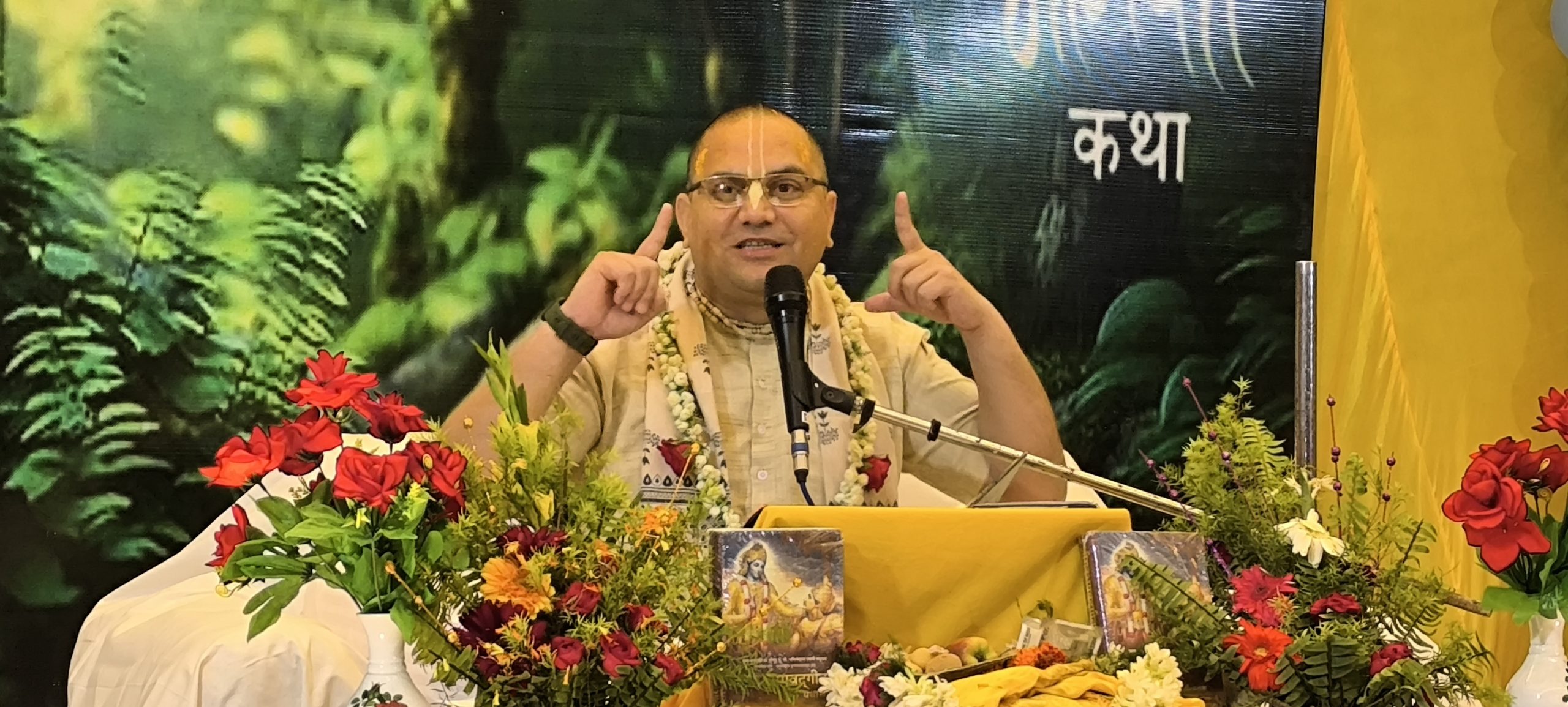 सिहोडीह के चौधरी मोहल्ला स्थित स्तुति बैंक्वेंट पैलेस में चल रहे सात दिवसीय श्रीमद् भगवत कथा के पांचवें दिन शुक्रवार को कथावाचक प्रशांत मुकुंद प्रभु ने कहा कि जीवन में दूसरे को दर्द देनेवाला व्यक्ति सुखी नहीं रह सकता है. जो दूसरे को दर्द देता है उसे भी दर्द मिलता है. कहा कि प्रथा के नाम पर पशु बलि पाप है. पशु हत्या करनेवाले को दंड मिलता है. कथावाचक प्रशांत मुकुंद प्रभु ने भगवान कृष्ण के वृंदावन के लीलाओं का वर्णन किया. कहा कि श्री कृष्ण ने जन्म लेते ही अदभुत कार्य करना शुरु कर दिया. भगवान छोटे बालक के रुप में जन्म लेते है, पर विशाल कार्य करते है. भगवान श्री कृष्ण ने जन्म के छठे दिन ही अपनी लीला दिखानी शुरु की दी. गिरिडीह के उद्योगपति अजय बगेड़िया व उनकी धर्मपत्नी संगीता बगेड़िया के द्वारा बड़े ही भक्ति भाव से भागवत कथा प्रारंभ किया गया है. बताया गया कि गिरिडीह शहर को भागवत गीता के उपदेश से कल्याण करने के लिए द्वारिका दिल्ली इस्कॉन से प्रशांत मुकुट प्रभु जी पधारे हैं.