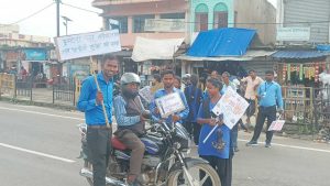 Giridih News :केएन बक्शी बीएड कॉलेज के प्रशिक्षुओं ने सोमवार को सड़क सुरक्षा जागरूकता रैली निकाली. बेंगाबाद चौक में प्रशिक्षुओं ने ट्रैफिक नियमों का पालन नहीं करने वाले वाहन चालकों को गुलाब दिया. उनसे नियमों का पालन करने की अपील की.