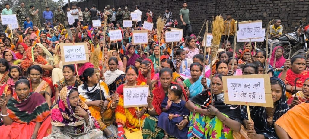बढ़ते प्रदूषण से परेशान ग्रामीणों ने किया प्रदर्शन.
