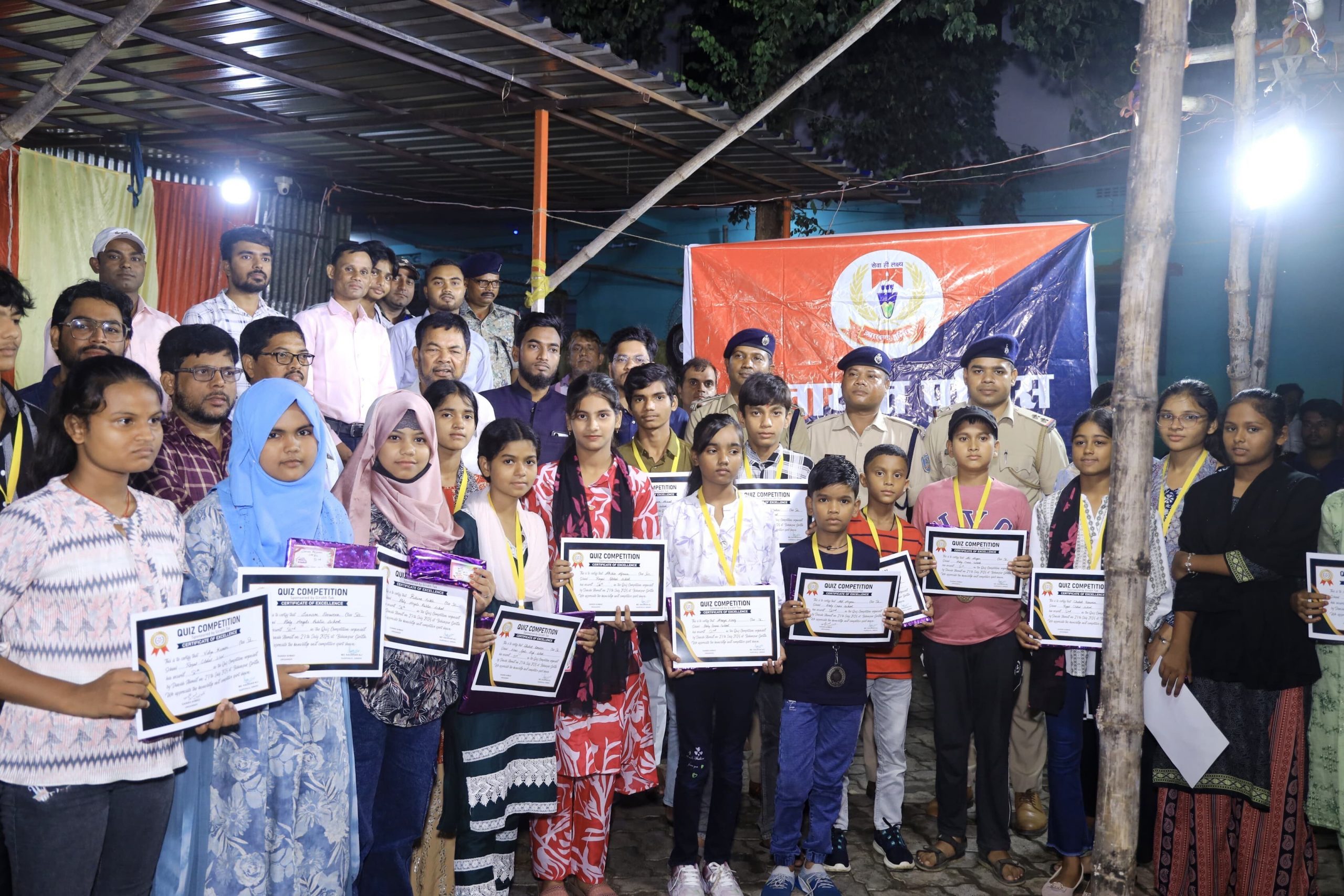 पचंबा के विशनपुर में क्विज के परिणाम घोषित कर पुरस्कार वितरण समारोह का आयोजन किया गया. समारोह के मुख्य अतिथि ट्रैफिक डीएसपी कौसर अली तथा विशिष्ट अतिथि ट्रैफिक इंस्पेक्टर दुगन टोपनो व पचंबा थाना प्रभारी राजीव कुमार थे. प्रतियोगिता 27 जुलाई को हुई थी. इसमें कक्षा चार से 10 तक के 400 से अधिक विद्यार्थियों ने विभिन्न वर्गों में भाग लिया था. समारोह में प्रत्येक कक्षा के प्रथम से पांचवें स्थान तक के विजेताओं को पुरस्कार, प्रमाणपत्र एवं मेडल देकर सम्मानित किया गया. वहीं, सभी प्रतिभागियों को पार्टिसिपेशन सर्टिफिकेट दिया गया. कार्यक्रम में राजेश कुमार, अनीश अहमद, मेराज अंसारी, अब्दुल लारी अली, अब्दुल अहद और इजाज अहमद का विशेष योगदान रहा. इस दौरान सभी अतिथियों ने बच्चों के ज्ञान, उत्साह और प्रतिभा की सराहना की. समारोह के अंत में ट्रैफिक पुलिस ने जागरूकता कार्यक्रम किया. आयोजक समाजसेवी दानिश अहमद ने कहा कि ऐसे कार्यक्रम से बच्चों का आत्मविश्वास बढ़ाता है. भविष्य में भी इस तरह के आयोजन किया जायेगा.डिस्क्लेमर: यह प्रभात खबर समाचार पत्र की ऑटोमेटेड न्यूज फीड है. इसे प्रभात खबर डॉट कॉम की टीम ने संपादित नहीं किया है