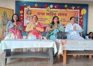 कार्यक्रम की शुरुआत विद्यालय की बहनों द्वारा प्रस्तुत हम ही हैं मातृशक्ति गीत से हुई, जिसने पूरे वातावरण को भावपूर्ण और ओजपूर्ण बना दिया. कार्यक्रम में अतिथि परिचय मधु श्रेय ने कराया, मंच संचालन शालिनी राज तथा धन्यवाद ज्ञापन निशा श्रेष्ठ ने किया. जिला संयोजिका स्वाति सिन्हा ने सप्तशक्ति संगम के उद्देश्य और इसकी स्थापना पर विस्तार से प्रकाश डालते हुए कहा कि नारी समाज की शक्ति का आधार है. उन्होंने महिलाओं से स्वबोध, कुटुंब प्रबोधन, सामाजिक समरसता, पर्यावरण संरक्षण और नागरिक कर्तव्यों का पालन करते हुए राष्ट्र को प्रगति पथ पर अग्रसर करने का आह्वान किया. मुख्य वक्ता श्वेता श्रीवास्तव ने कुटुंब प्रबोधन और पर्यावरण संरक्षण पर अपने विचार व्यक्त किए. उन्होंने कहा कि यदि नारी अपने सप्त गुणों को जागृत कर ले तो वह समाज और संसार दोनों में सकारात्मक परिवर्तन ला सकती है. उन्होंने उपस्थित माताओं से परिवार में स्वच्छता, पर्यावरण संरक्षण तथा कम से कम एक पेड़ लगाने का संकल्प लेने की अपील की. अध्यक्षीय उद्बोधन देते हुए अनिता मिश्रा ने कहा कि नारी श्रद्धा और शक्ति का प्रतीक है. आधुनिकता के इस दौर में माताओं को अपनी समृद्ध संस्कृति और संस्कारों से जुड़े रहने और बच्चों को संस्कारी बनाने की जिम्मेदारी निभानी चाहिए. कार्यक्रम में विद्यालय की दीदियों सहित सैकड़ों महिलाएं व माताएं बड़ी संख्या में उपस्थित रहीं.