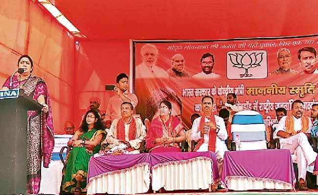 देवडांड़ में सभा. स्मृति ईरानी ने प्रदीप यादव पर किया हमला