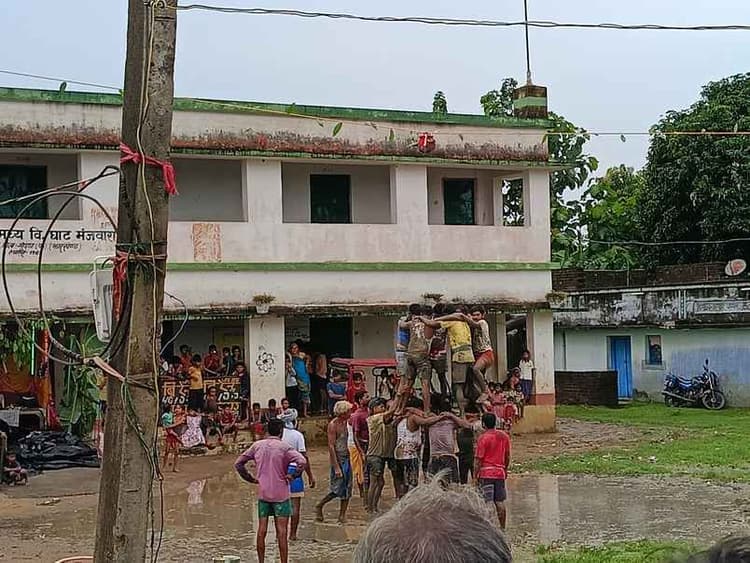 गोड्डा प्रखंड के घाट मंजवारा पंचायत में श्रीकृष्ण जन्माष्टमी का पर्व पूरे श्रद्धा, भक्ति और उत्साह के साथ मनाया गया. इस अवसर पर युवाओं द्वारा पारंपरिक मटका फोड़ प्रतियोगिता का आयोजन किया गया, जिसे देखने के लिए बड़ी संख्या में ग्रामीणों की भीड़ उमड़ी. प्रतियोगिता में घाट मंजवारा क्षेत्र की कुल 17 टीमों ने भाग लिया. प्रतिभागियों ने अद्भुत उत्साह, समर्पण और टीम भावना का प्रदर्शन करते हुए भगवान श्रीकृष्ण की बाल लीलाओं की झलक प्रस्तुत की. भीड़ ने तालियों और जयकारों के साथ प्रतिभागियों का उत्साहवर्धन किया. प्रतियोगिता में विजयी टीम को आयोजन समिति की ओर से ₹2111 की नकद पुरस्कार राशि प्रदान कर सम्मानित किया गया. आयोजन में विष्णु रजक, मुकेश मंडल, सुबोध मंडल, सन्न्टुस चौधरी, फिलो यादव, रोहित मंडल, मंटु मंडल, सेटु मंडल, सुजीत राउत, करन मंडल, करन मरीक, रंजन मंडल, पारन यादव, गुंजेश मंडल, दीपक मंडल और बीपेन्द्र महराना सहित अन्य प्रतिभागियों ने भाग लिया. आयोजन के सफल संचालन को लेकर ग्रामीणों और समिति के सदस्यों ने हर्ष व्यक्त किया तथा भविष्य में भी ऐसे सांस्कृतिक आयोजनों को निरंतर आयोजित करने की बात कही.