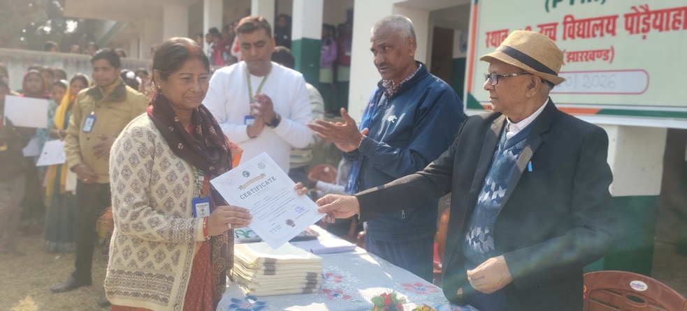 पोड़ैयाहाट प्रखंड स्थित प्लस टू उच्च विद्यालय, पोड़ैयाहाट में शुक्रवार को शिक्षक-अभिभावक संगोष्ठी सह सम्मान समारोह का आयोजन किया गया. कार्यक्रम की अध्यक्षता विद्यालय के प्राचार्य नीतीश कुमार ने की. इस अवसर पर मुख्य अतिथि के रूप में समाजसेवी श्यामानंद वत्स तथा विधायक प्रतिनिधि अजय शर्मा उपस्थित रहे. संगोष्ठी के दौरान उपस्थित अभिभावकों से अपने बच्चों को नियमित रूप से विद्यालय भेजने का आग्रह किया गया, ताकि उन्हें गुणवत्तापूर्ण शिक्षा प्रदान की जा सके. शिक्षकों ने बताया कि विद्यालय में पढ़ाई का वातावरण बेहतर है और शिक्षक पूरी निष्ठा से शिक्षण कार्य के लिए तत्पर हैं. उन्होंने यह भी जानकारी दिया कि इस वर्ष विद्यालय का मैट्रिक परीक्षा परिणाम अत्यंत सराहनीय रहा है. विद्यालय के शिक्षकों ने अभिभावकों को आश्वस्त किया कि यदि वे बच्चों को नियमित रूप से विद्यालय भेजेंगे, तो शिक्षक बेहतर शैक्षणिक परिणाम देने के लिए हरसंभव प्रयास करेंगे. समाजसेवी श्यामानंद वत्स एवं विधायक प्रतिनिधि अजय शर्मा ने भी अभिभावकों से बच्चों की शिक्षा को प्राथमिकता देने की अपील की. उन्होंने कहा कि यदि किसी प्रकार की समस्या हो तो उसे मिलकर दूर किया जाएगा. उन्होंने भावुक अपील करते हुए कहा कि आधी रोटी खाकर भी बच्चों की पढ़ाई में कोई कमी न छोड़ें, क्योंकि बच्चे ही माता-पिता और देश का भविष्य हैं. कार्यक्रम के अंत में बेहतर प्रदर्शन करने वाले छात्र-छात्राओं एवं शिक्षकों को मुख्य अतिथियों के हाथों प्रशस्ति पत्र एवं मेडल देकर सम्मानित किया गया. सम्मानित शिक्षकों में मोनिका कुमारी, अर्चना कुमारी, संगीता हांसदा, सपना साहा, नसीब मुर्मू, मनोज पंडित सहित अन्य शिक्षक शामिल थे. वहीं सम्मानित विद्यार्थियों में छोटू यादव, शिवम दास, शिवानी कुमारी तथा सुहागिन सोरेन के नाम प्रमुख रहे. कार्यक्रम का मंच संचालन शिक्षिका मोनिका कुमारी ने किया.