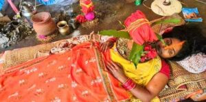 सीने में कलश स्थापित कर महिला ने पेश की भक्ति की मिसाल