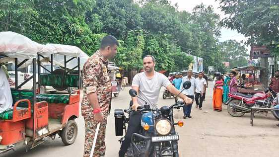 गोड्डा जिला परिवहन विभाग के निर्देश पर नगर थाना गोड्डा की ओर से बुधवार की शाम सघन वाहन जांच अभियान चलाया गया. यह अभियान नगर थाना प्रभारी दिनेश महली के नेतृत्व में थाना परिसर के सामने पुलिस बल की मौजूदगी में किया गया. जांच के दौरान दर्जनों दोपहिया और चारपहिया वाहनों की जांच की गयी. इस दौरान बिना वैध कागजात, ड्राइविंग लाइसेंस तथा बिना हेलमेट के वाहन चलाने वाले 25 वाहन चालकों से जुर्माना वसूल कर उन्हें छोड़ा गया. थाना प्रभारी ने बताया कि यातायात नियमों के उल्लंघन पर सख्त कार्रवाई की जाएगी. उन्होंने कहा कि जन सुरक्षा और सड़क दुर्घटनाओं को रोकने के उद्देश्य से यह अभियान चलाया गया है और आगे भी यह अभियान नियमित रूप से जारी रहेगा. पुलिस की इस कार्रवाई से वाहन चालकों में हड़कंप देखा गया. प्रशासन ने आम लोगों से यातायात नियमों का पालन करने और सभी आवश्यक दस्तावेजों के साथ वाहन चलाने की अपील की है.