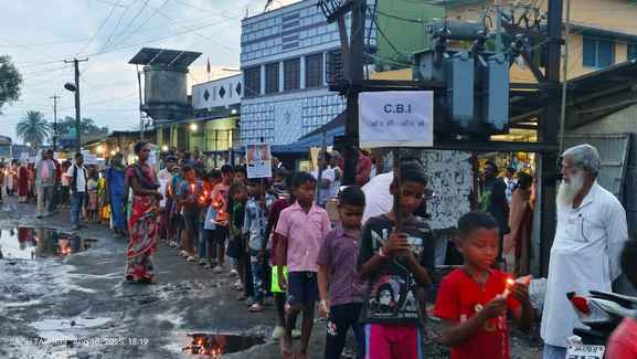 ललमटिया के सिदो-कान्हू चौक से ललमटिया थाना मोड़ तक चांद भैरव राजा राज आवासीय विद्यालय के बच्चों ने हाथ में कैंडल लेकर मार्च किया. स्कूली बच्चों ने प्रदर्शन करते हुए कहा कि सूर्या हांसदा सभी बच्चों के अभिभावक के रूप में कार्य करते थे. उनके पुलिस एनकाउंटर की सीबीआई से जांच करायी जाये एवं दोषी व्यक्तियों को कानूनी सजा मिले. बच्चों ने कैंडल मार्च के दौरान भावुक होते हुए कहा कि हमारी पढ़ाई कैसे होगी, हम सभी गरीब एवं असहाय बच्चे हैं.