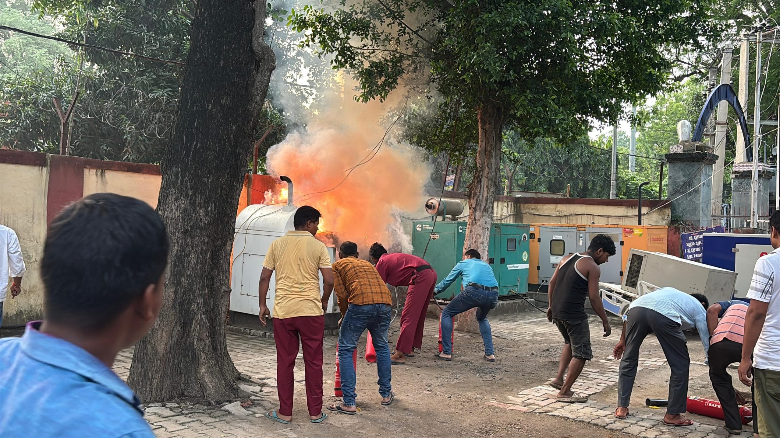 तसवीर-22 आग बुझाने का प्रयास करते कर्मी. प्रतिनिधि, गोड्डा सदर अस्पताल परिसर में एसएनसीयू विभाग के डीजी में शाम शाम बजे के बाद अचानक आग लग गयी. आग कैसे लगी. इसकी जानकारी नहीं मिल पायी. डीजी अस्पताल के मुख्य गेट के समीप रखा था. कनेक्शन एसएनसीयू से सीधा था. हालांकि आग लगने के बाद अस्पताल के गार्ड के द्वारा आग पर काबू पाया गया. तुरंत पानी आदि का छिडकाव किया गया. अग्निशमन सिलिंडर का भी मौके पर उपयोग किया गया. तब जाकर आग पर काबू पाया जा सका. आग लगने के कारण डीजी में खराबी आयी है. दुरुस्त करने का काम अस्पताल प्रबंधन के ओर से किया जा रहा है. हालांकि डीजी में आग लगने की यह पहली घटना नहीं है. इसके पहले भी सदर अस्पताल में रखे डायलिसिस केंद्र के डीजी में आग लग गयी थी. काफी मशक्कत के बाद बुझायी गयी थी. डीजी में आग लगने की यह दूसरी घटना है.