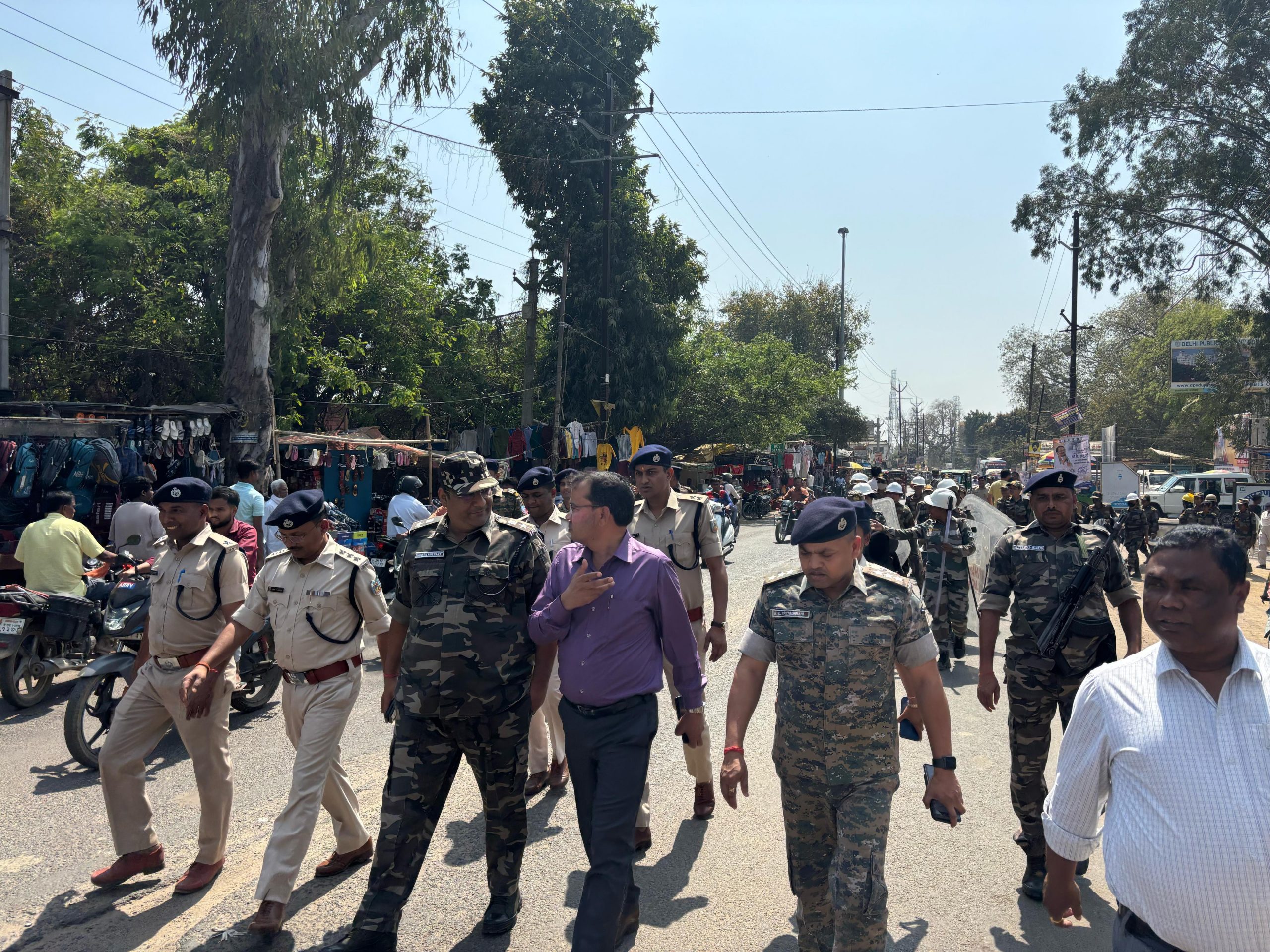 प्रशासन है अलर्ट, शांति के साथ मनायें त्योहार : एसडीपीओबसंतराय. होली और रमजान के दौरान क्षेत्र में शांति व्यवस्था बनाये रखने के लिए जिला व पुलिस प्रशासन अलर्ट है. गुरुवार को एसडीओ बैद्यनाथ उरांव, एसडीपीओ अशोक प्रियदर्शी, डीएसपी जेपी एन चौधरी, कुमार गौरव के नेतृत्व में गुरुवार को बसंतराय थाना क्षेत्र के विभिन्न गांवों में फ्लैग मार्च किया. लोगों से आपसी सौहार्द के साथ पर्व मनाने की अपील की. मौके पर पुलिस इंस्पेक्टर विष्णु देव चौधरी, दिनेश महली, थाना प्रभारी मनीष कुमार यादव सहित अन्य पदाधिकारी व पुलिस कर्मी मौजूद थे. बसंतराय थाना क्षेत्र के मेदनीचक, कदमा, जगतपुर, प्रखंड मुख्यालय स्थित सदर बाजार समेत अन्य गांवों पर पुलिस पदाधिकारियों की टीम ने फ्लैग मार्च कर शांति बनाये रखने का आग्रह किया.सीओ व एसडीपीओ के नेतृत्व में जवानों ने किया फ्लैग मार्च