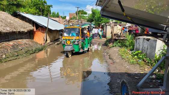 मेहरमा प्रखंड के सुड़नी गांव में मुख्य सड़क पर वर्षभर जलजमाव की समस्या बनी हुई है, जिससे ग्रामीणों और स्कूल जाने वाले बच्चों को भारी परेशानियों का सामना करना पड़ रहा है. ग्रामीणों का कहना है कि बारिश और घरों से निकलने वाला पानी सड़क पर जमा हो जाता है, जिससे न केवल आवागमन बाधित होता है, बल्कि संक्रमण और बीमारियों का खतरा भी बना रहता है. ग्रामीणों के अनुसार, स्व. भरत मंडल के घर से लेकर रमेश दास होते हुए रामधनी साह के घर तक पक्की नाला का निर्माण पंचायत द्वारा 15वें वित्त आयोग मद से कराया जा रहा था. लेकिन कुछ लोगों द्वारा सरकारी जमीन पर अतिक्रमण कर लेने के कारण नाला निर्माण कार्य बाधित हो गया है. इसके चलते पानी की निकासी संभव नहीं हो पा रही है और मुख्य सड़क जलजमाव का शिकार हो गयी है. स्कूल जाने वाले बच्चों को प्रतिदिन इस गंदे पानी से होकर गुजरना पड़ता है, जिससे उनके स्वास्थ्य पर भी प्रतिकूल असर पड़ सकता है. ग्रामीण मृत्युंजय सिंह, आशुतोष सिंह, राजेश सिंह, मो. असलम, मो. तबरेज, पिंटू कुमार, आदित्य सिंह, बुद्धा सिंह और उमेश कुमार ने प्रशासन से अविलंब अतिक्रमण हटाने और नाला निर्माण कार्य को फिर से शुरू कराने की मांग की है. ग्रामीणों ने चेताया है कि यदि शीघ्र कार्रवाई नहीं की गयी, तो जलजमाव से स्थिति और गंभीर हो सकती है. प्रशासन से अपेक्षा है कि वह संज्ञान लेकर समस्या का शीघ्र समाधान करे.